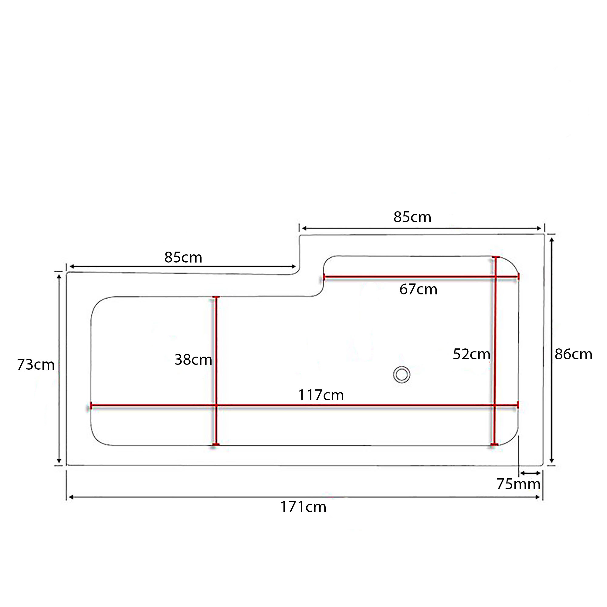 Badkar Behag är ett hörnbadkar med rymlig sittdel som ger mycket komfort, hela 85 cm bred, kortaste bredden är 73 cm i bredd. Karet levereras komplett med ställbara fötter, bottenventil och avloppsslang.