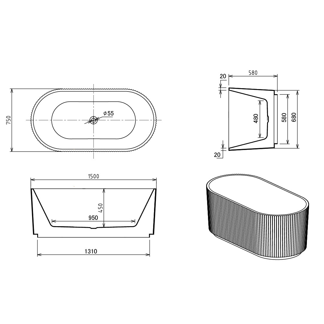 Badkar Elegans från Bathlife har en smakfullt räfflad utsida som skänker elegans i varje badrum. Med mjukt rundad form inuti på båda sidor för långa sköna stunder. Badkaret är tillverkat i sanitetsakryl och levereras komplett med bottenventil, avloppsslang och justerbara fötter. Köp till blandare och duschset.