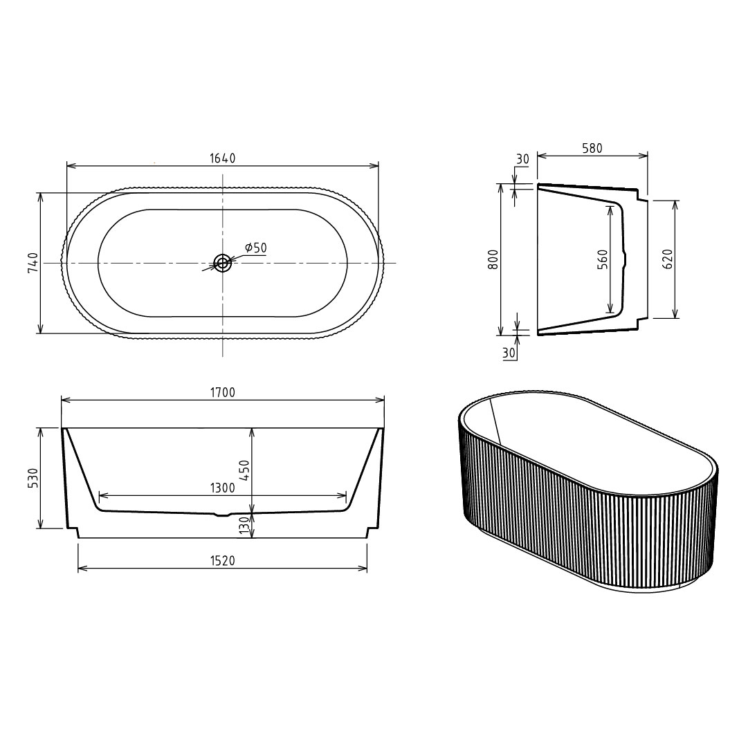 Badkar Elegans från Bathlife har en smakfullt räfflad utsida som skänker elegans i varje badrum. Med mjukt rundad form inuti på båda sidor för långa sköna stunder. Badkaret är tillverkat i sanitetsakryl och levereras komplett med bottenventil, avloppsslang och justerbara fötter. Köp till blandare och duschset.