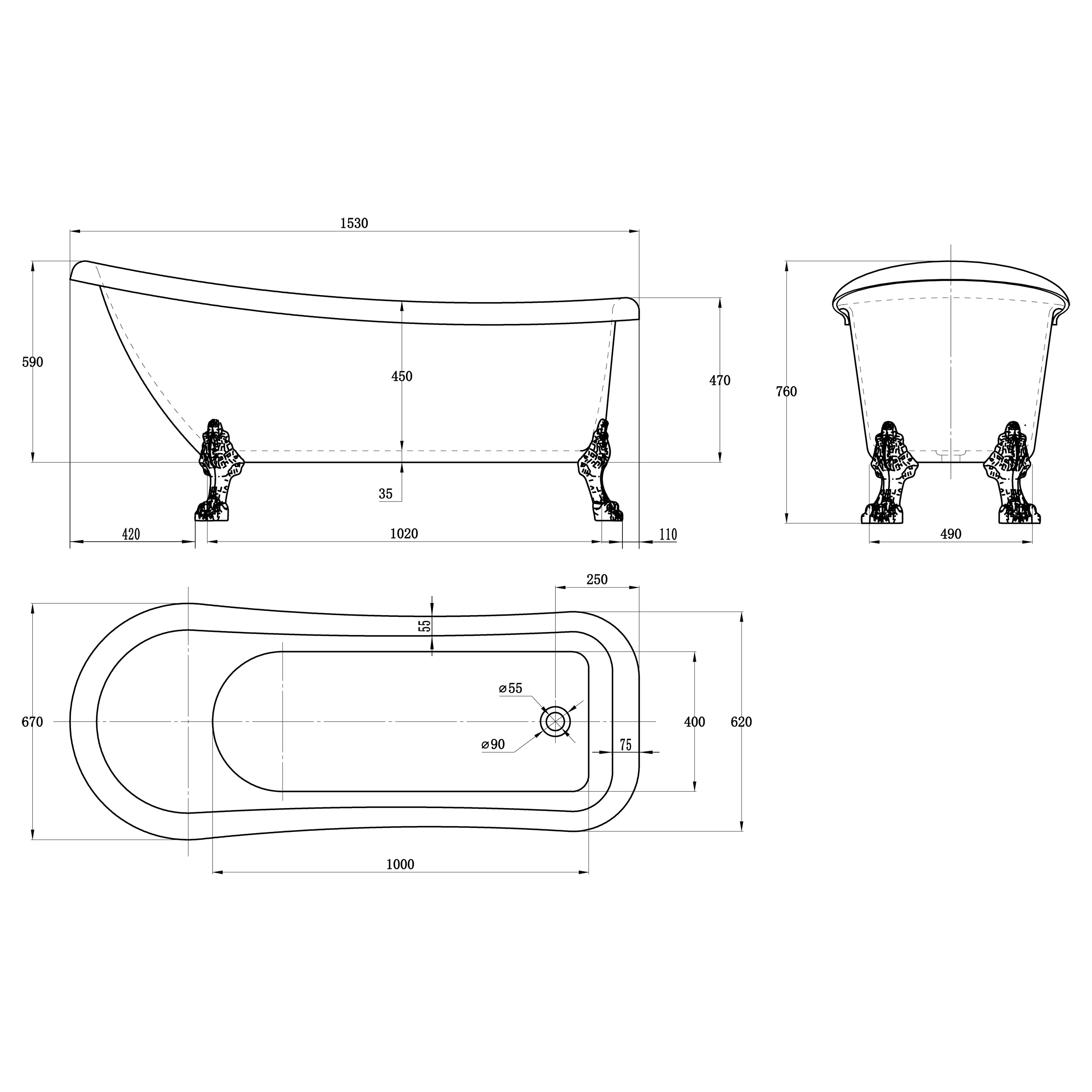 Tassbadkar Bathlife Ideal är ett klassiskt, fristående badkar i dubbla lager sanitetsakryl förstärkt med glasfiber vilket ger extra stabilitet. Det levereras med eleganta lejonfötter, avloppsslang samt förkromad bottenventil. Lejonfötterna är ställbara så att badkaret kan ställas i lod. Köp till badkarsblandare.