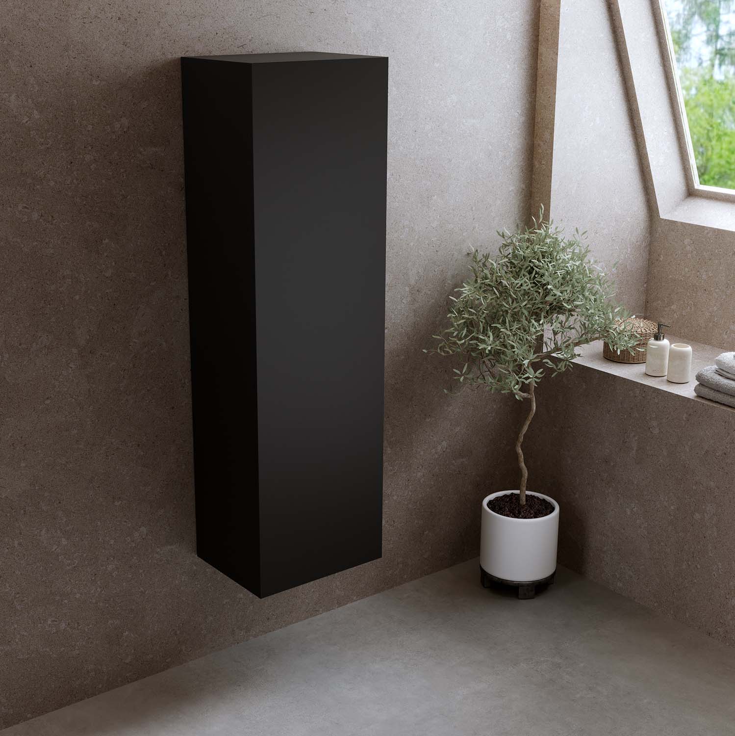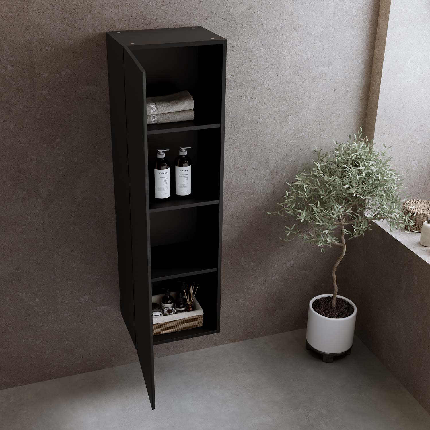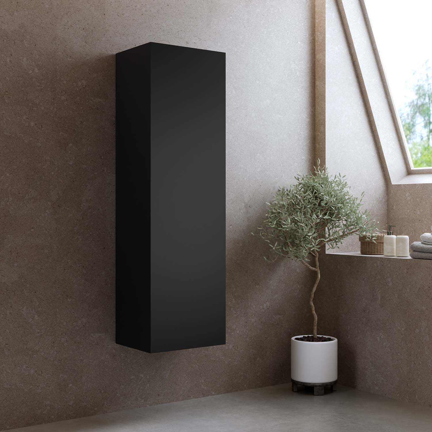 Bathlife högskåp är ett stilrent och praktiskt komplement till din Bathlife kommod. Högskåpet är rymligt och är utrustat med en vändbar dörr med integrerat grepp och mjukstängande gångjärn. Du väljer vilken sida dörren ska öppnas åt vid installationen. På insidan finns tre hyllplan, varav ett är fast för ökad stabilitet och de övriga justerbara för flexibel förvaring. Skåpet kommer färdigmonterat.