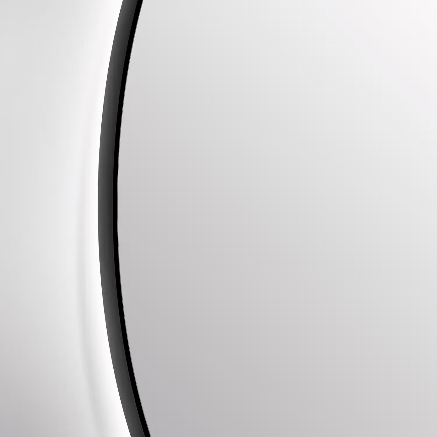 Spegel Bathlife Spira är en rund spegel med svar ram samt en elegant LED-belysning som belyser väggen bakom spegeln. Spegeln finns i fyra storlekar 600,800,1000 och 1200.