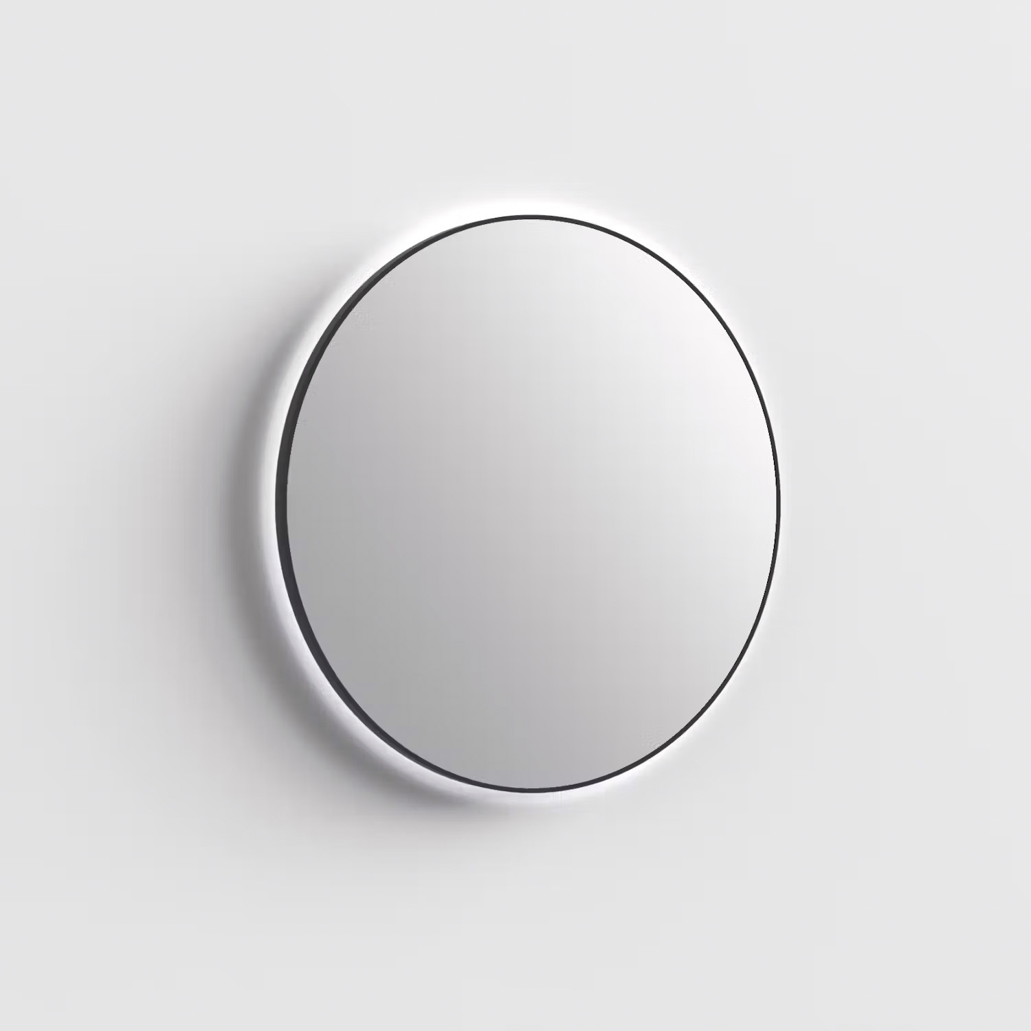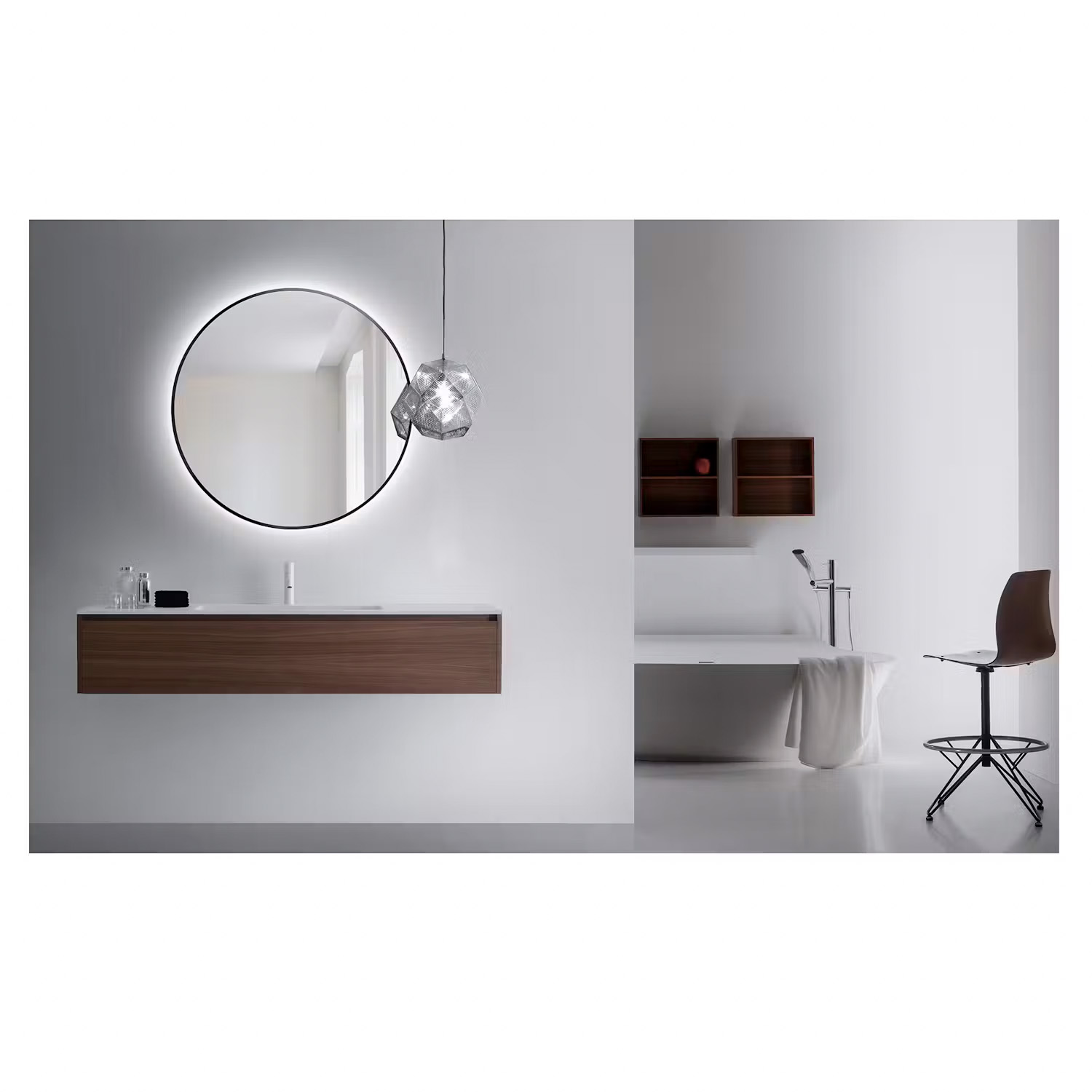 Spegel Bathlife Spira är en rund spegel med svar ram samt en elegant LED-belysning som belyser väggen bakom spegeln. Spegeln finns i fyra storlekar 600,800,1000 och 1200.
