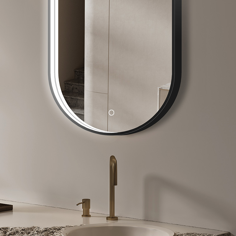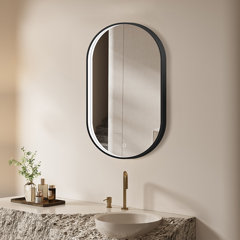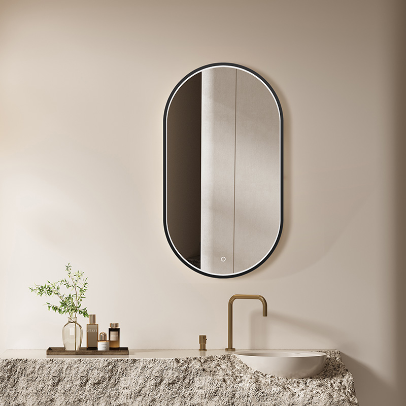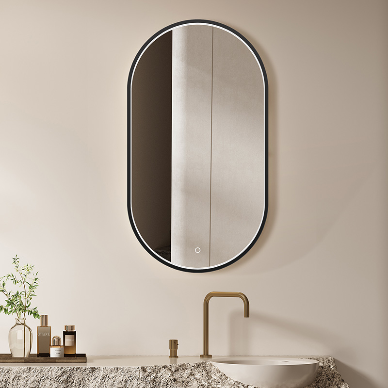 Spegel Bathlife Lysa Oval är en elegant rundad spegel med svart ram och belysning på insidan av ramen som ger ljus mot ansiktet. Med touchfunktionen på spegeln justerar du enkelt ljustemperaturen från varmt till kallt efter funktion och behöv.