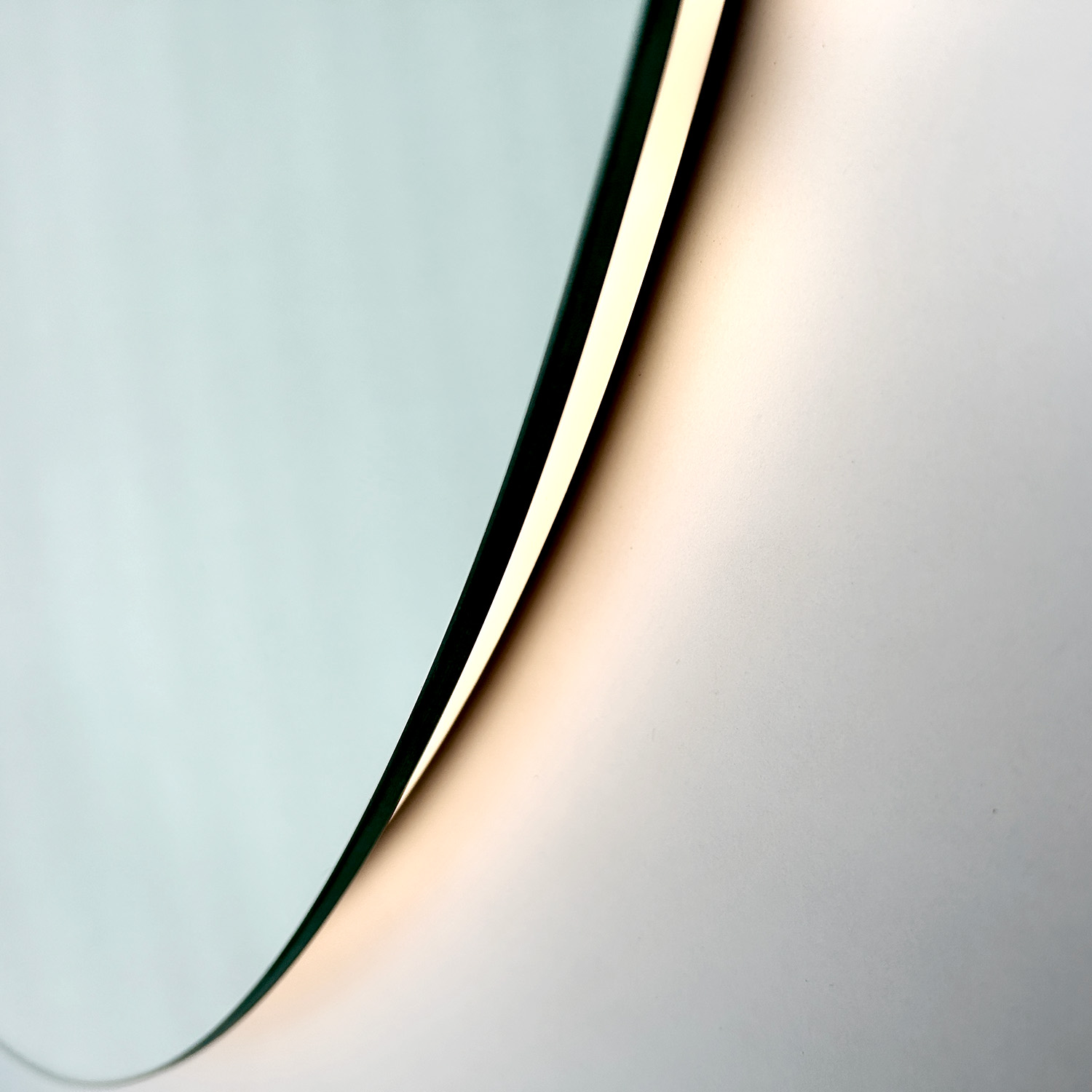 - Varmvitt ljus som strålar utåt bakom spegeln