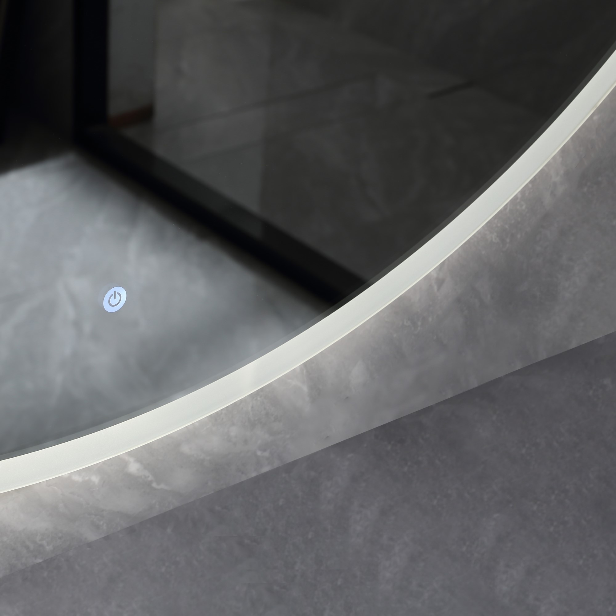 Spegelns ram består av frostat glas som släpper igenom ljuset.