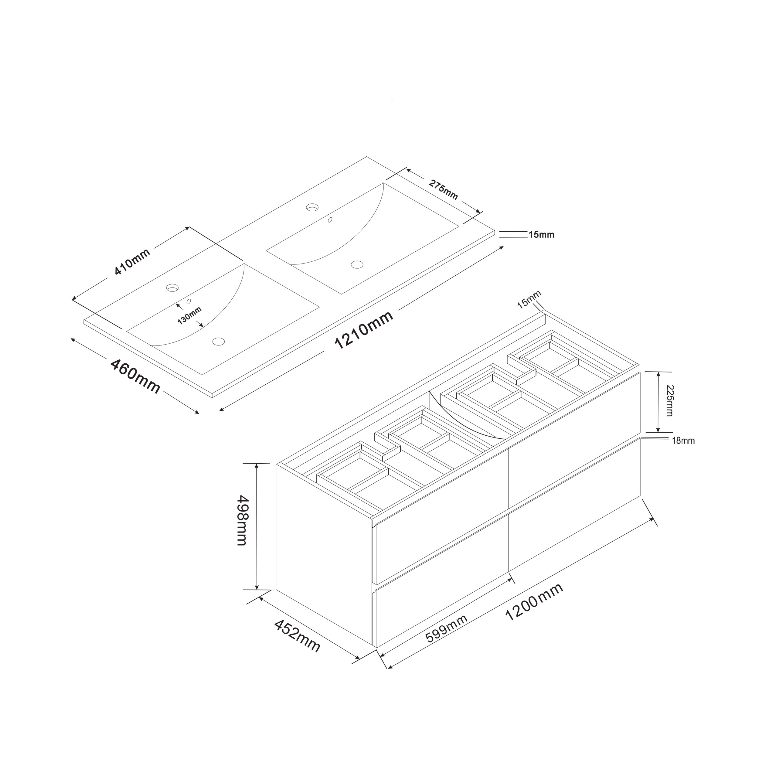 Badrumsskåp Bathlife Eufori 1200 Vit Med Tvättställ
