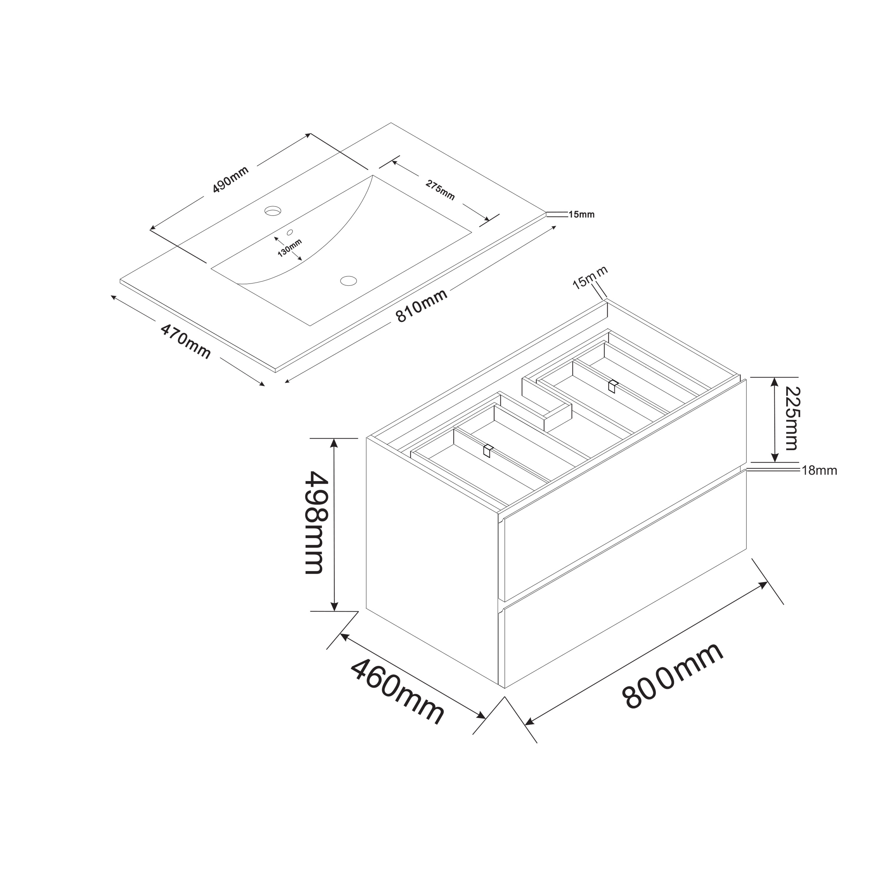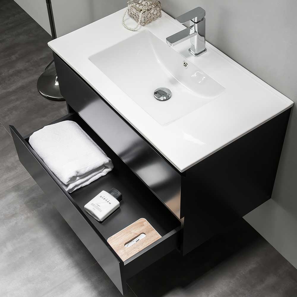 Badrumsskåp Bathlife Eufori 800 Svart Med Tvättställ