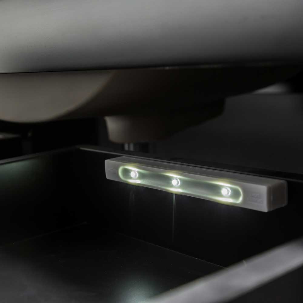 Övre kanten på luckan är snedställd för att lådorna ska vara lätta att öppna. Tvättställsskåp Eufori finns i flera olika bredder.