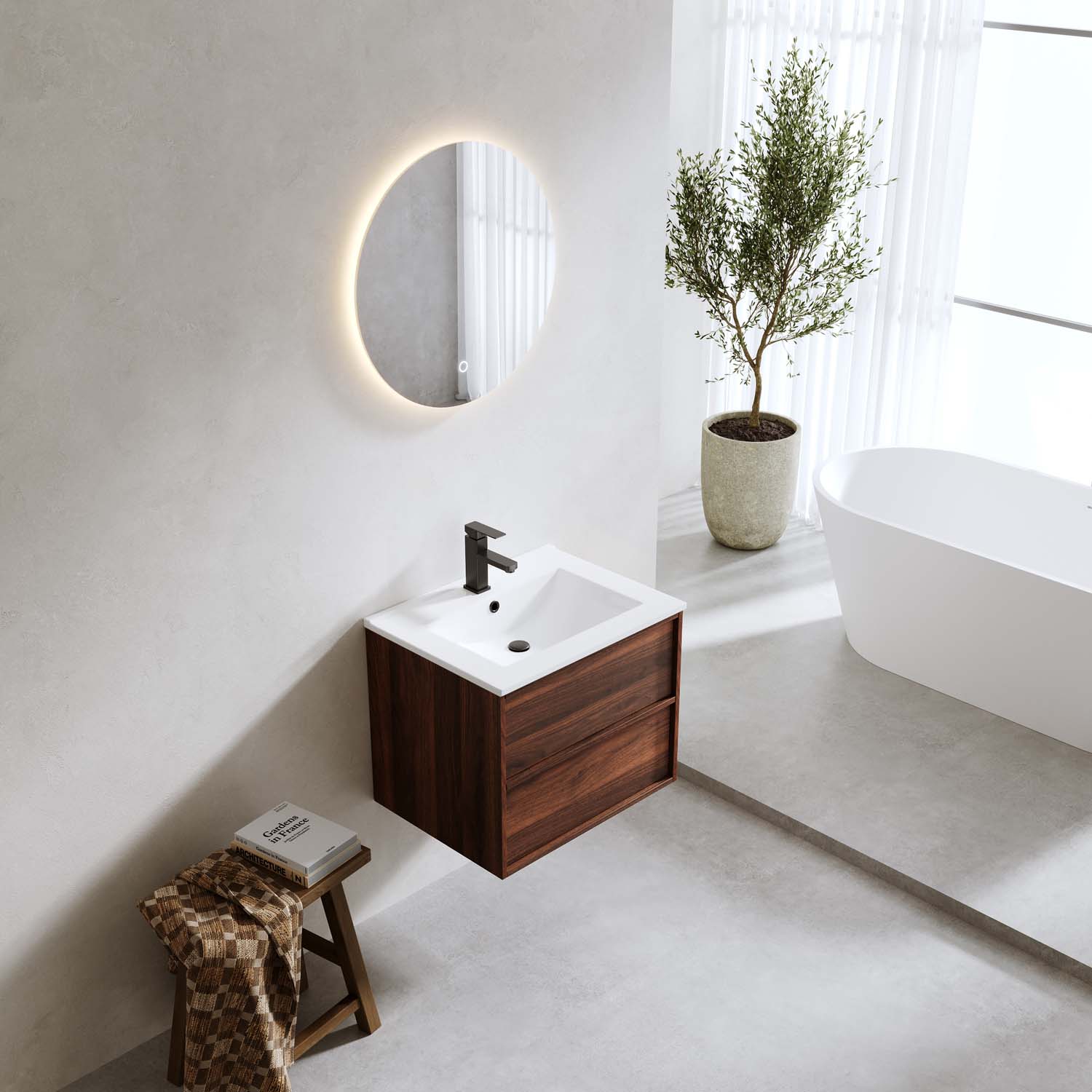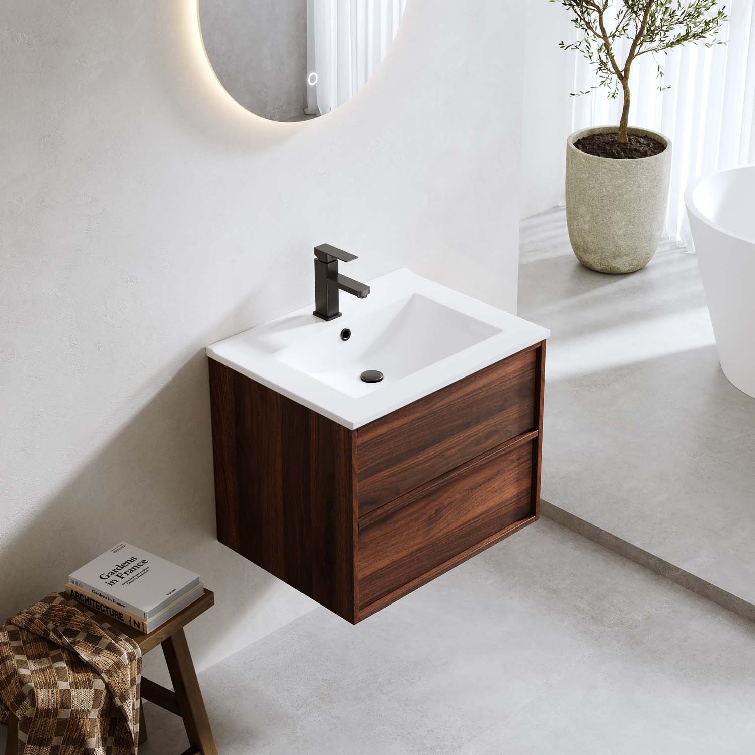 Tvättställsskåp Charm 600 Valnöt Med Tvättställ