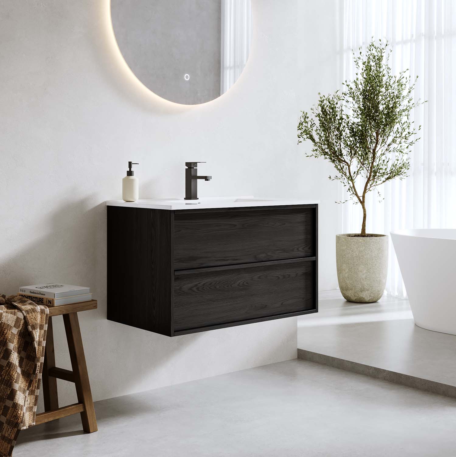 Tvättställsskåp Charm 800 Svart Ek Med Tvättställ