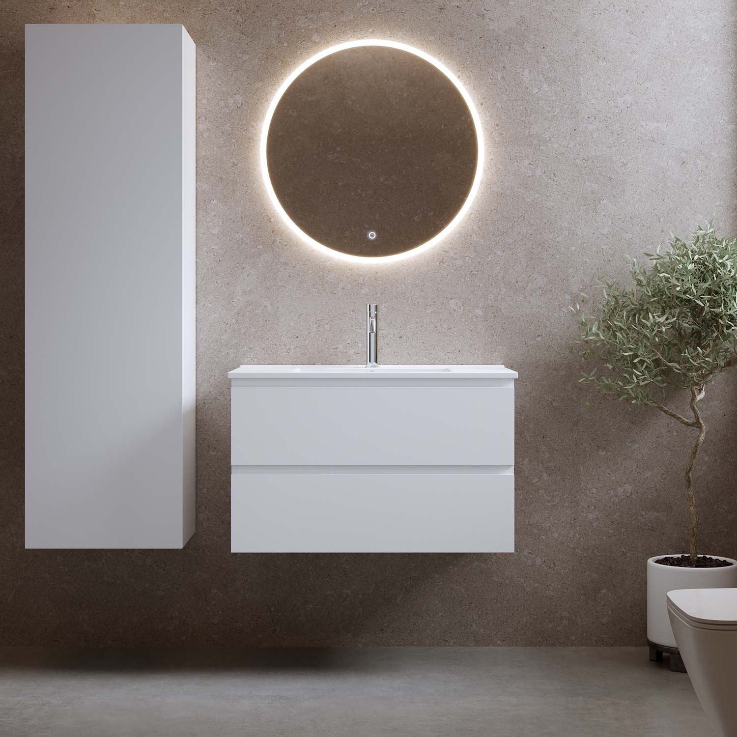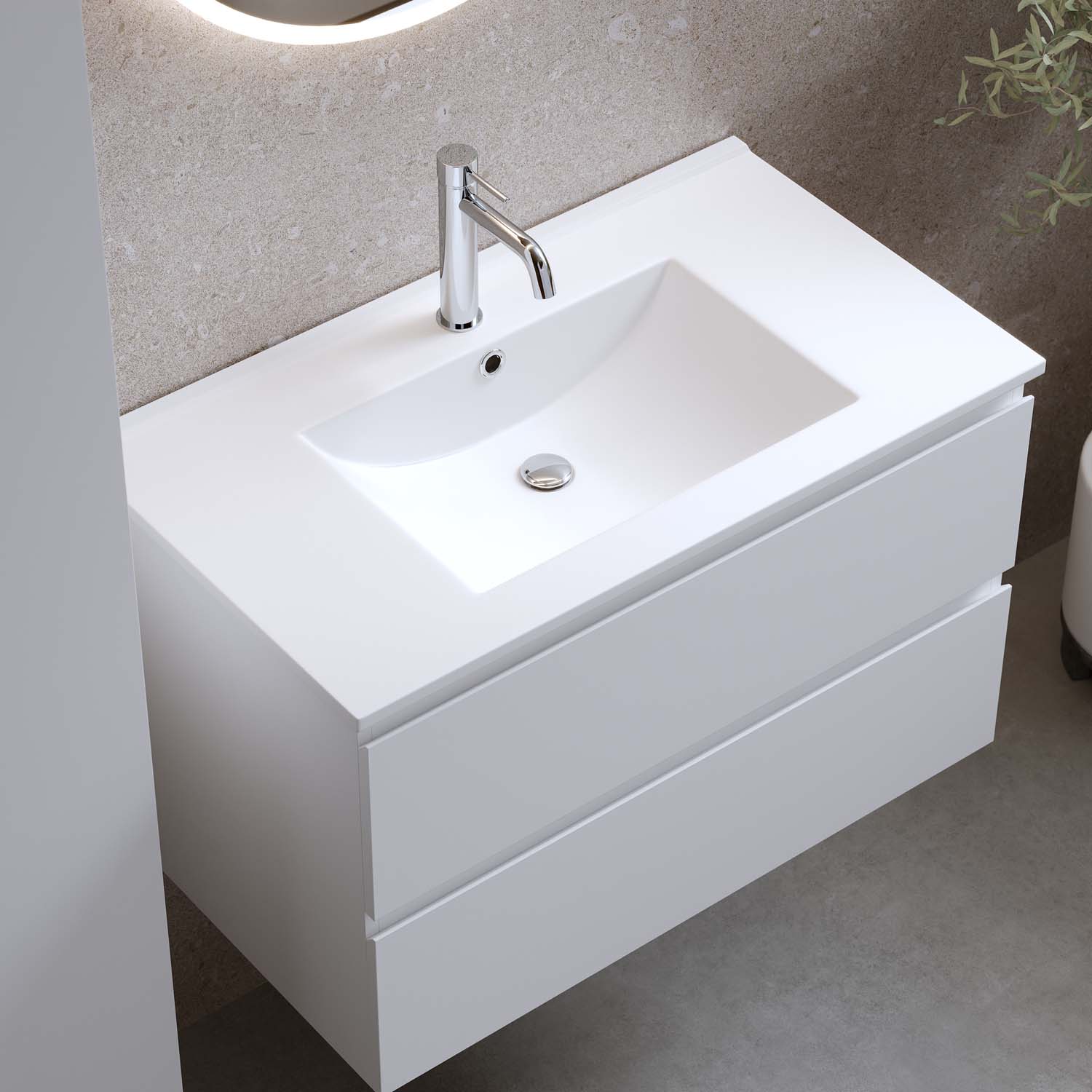 Tvättställsskåp Eufori 800 Vit Matt Med Tvättställ
