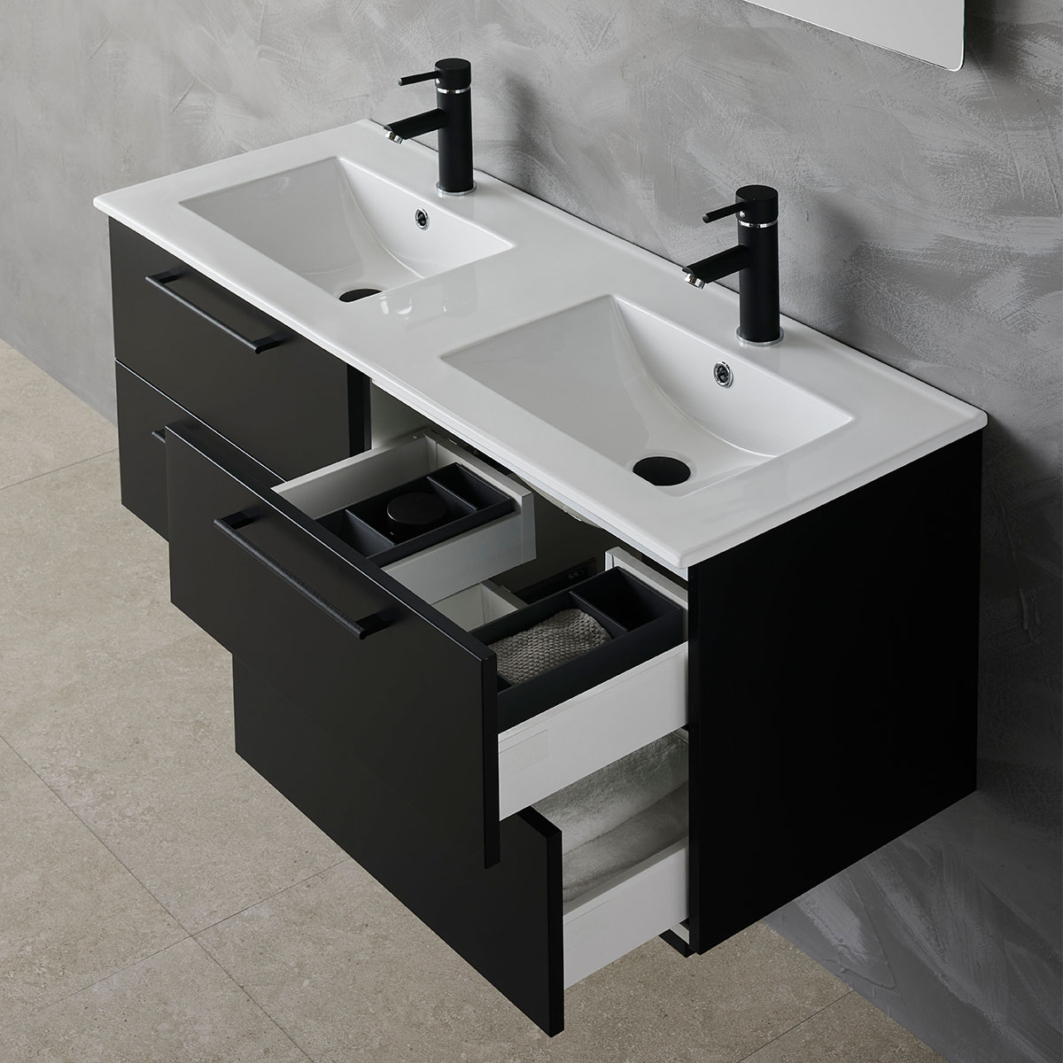 Tvättställsskåp Lust Svart 1200D Med Tvättställ