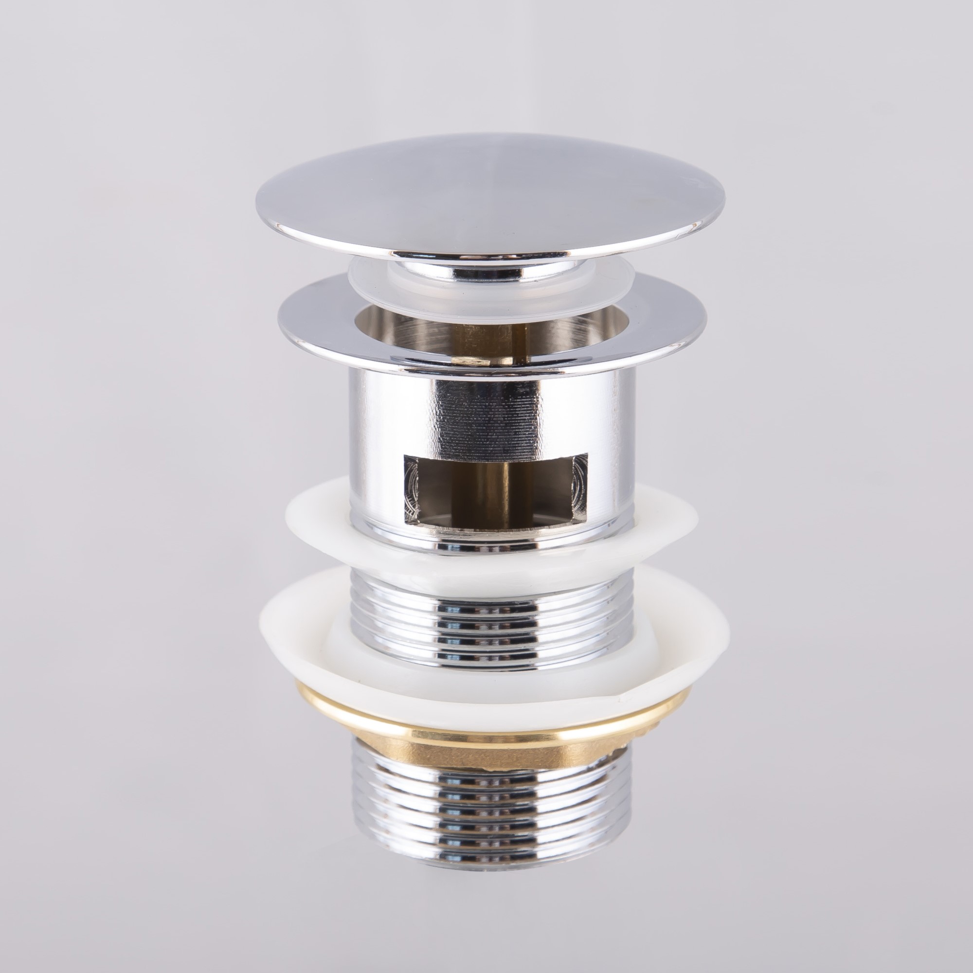 Bottenventil Bathlife med bräddavlopp har ett lock med fjädring. Bottenventilen öppnas och stängs genom att trycka ner locket.