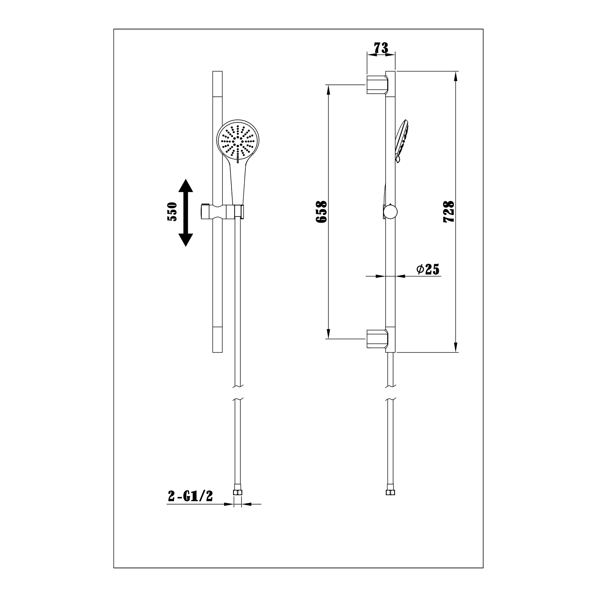 Till duschsetet levereras en handdusch, duschslang samt duschstång som passar utmärkt till alla typer av duschblandare som har standardkoppling G ½.