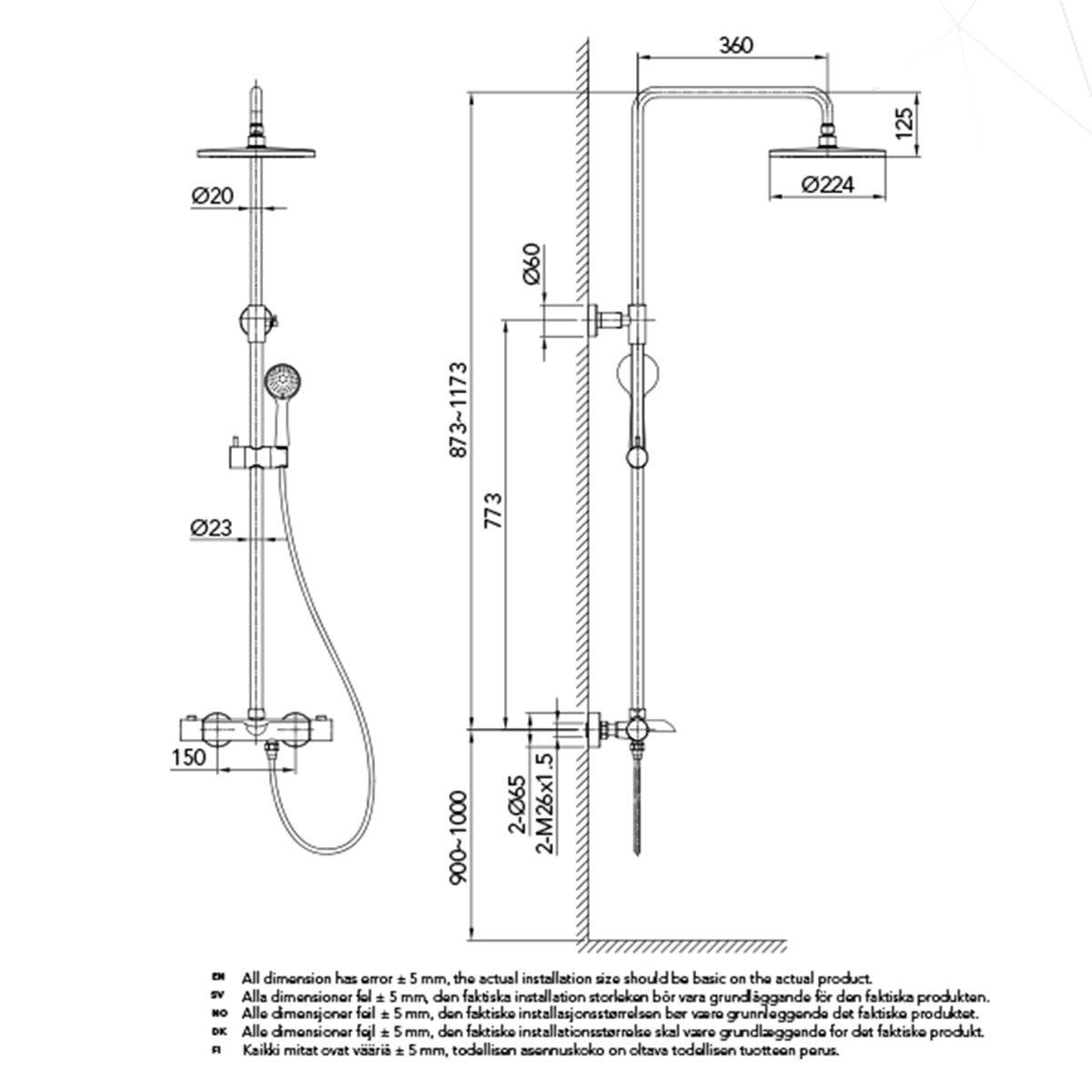 Takduschset Bathlife Brusa tapp är en takdusch med badkarsblandare. Brusa tapp är ett komplett takduschsetpaket i stilren design som passar in i de flesta badrum. Brusa tapp är ett takduschset med en termostatblandare med badkarspip och ett säkerhetsstopp på 38 grader, en takdusch, en handdusch med duschslang samt en duschstång. Blandaren till takduschsetet finns i både CC 150 och CC 160. Teknisk data - Varmvatten: min 50 grader-max 90 grader - Kallvatten: min 4 grader-max 25 grader - Arbetstryck: 50-1000 kpa - Rekommenderat tryck: 100-600 kpa