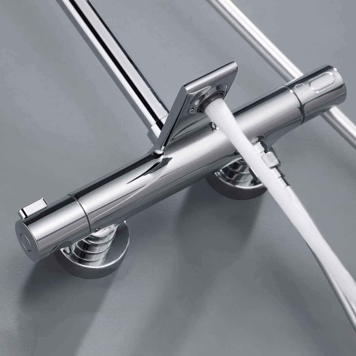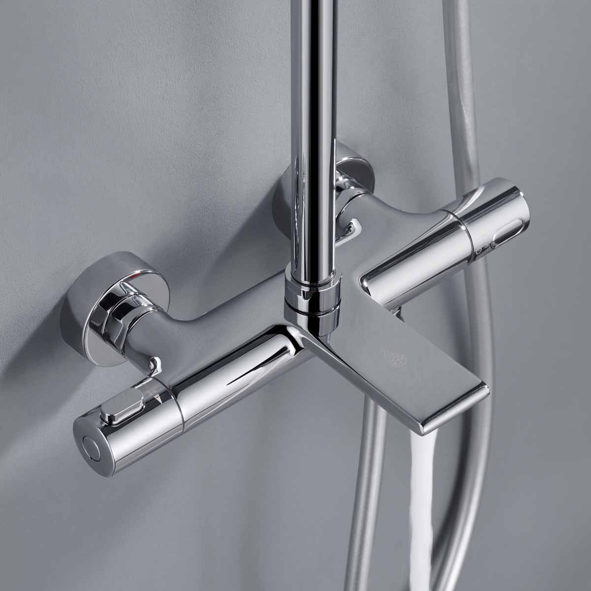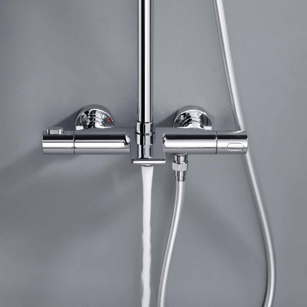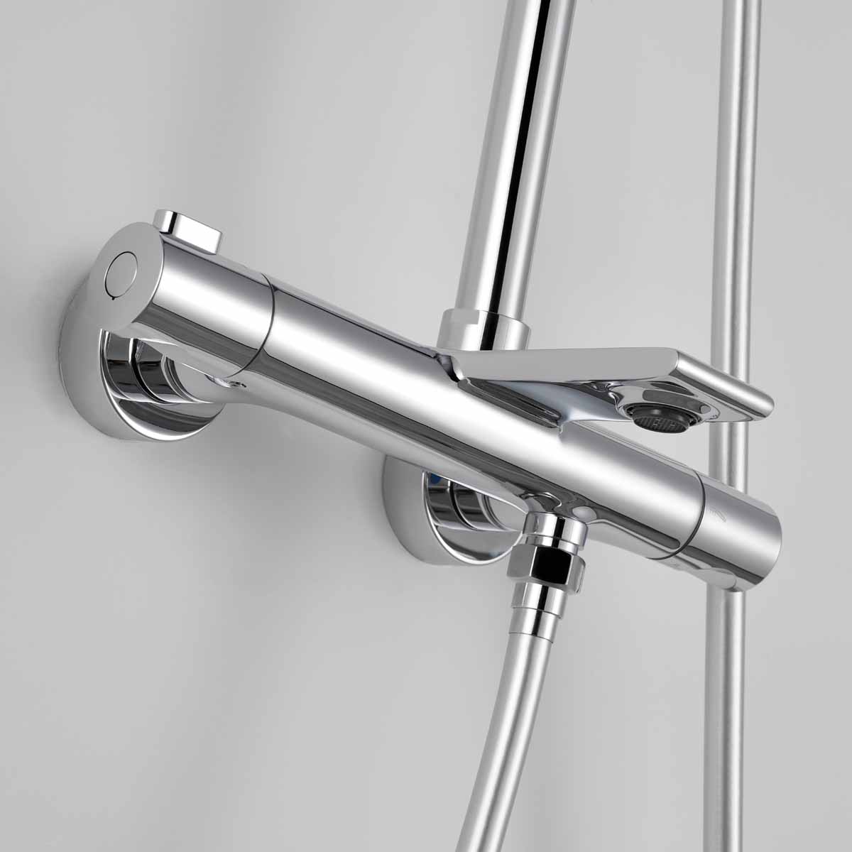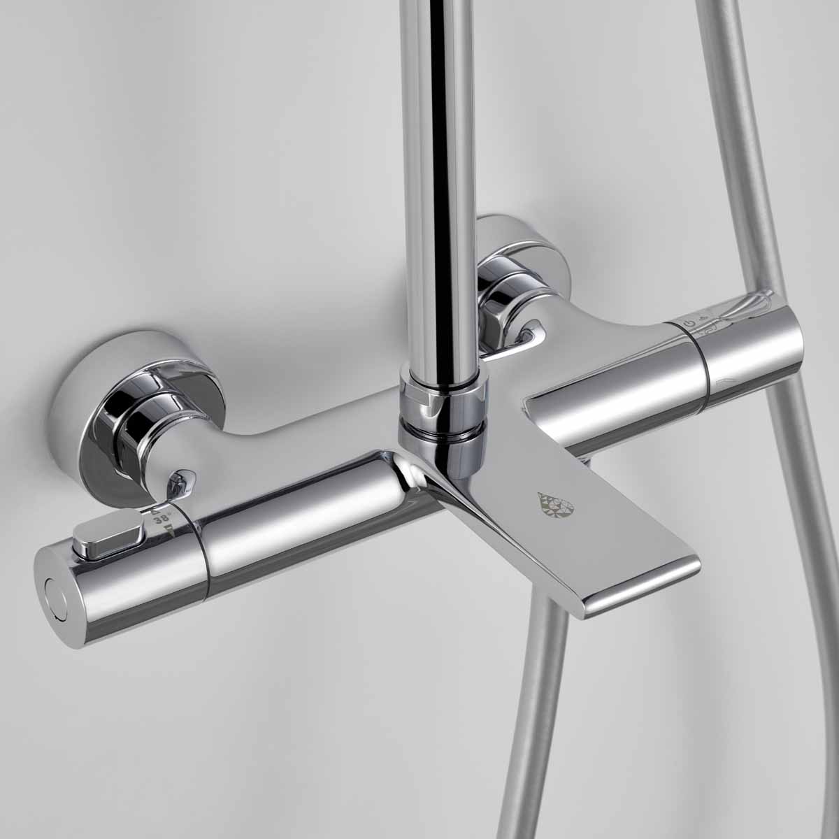 Takduschset Bathlife Dagg tapp är en takdusch med badkarsblandare. Dagg tapp är ett komplett takduschsetpaket i stilren design som passar in i de flesta badrum. Dagg tapp är ett takduschset med en termostatblandare med badkarspip och ett säkerhetsstopp på 38 grader, en takdusch, en handdusch med duschslang samt en duschstång. Blandaren till takduschsetet finns i både CC 150 och CC 160. Teknisk data - Varmvatten: min 50 grader-max 90 grader - Kallvatten: min 4 grader-max 25 grader - Arbetstryck: 50-1000 kpa - Rekommenderat tryck: 100-600 kpa