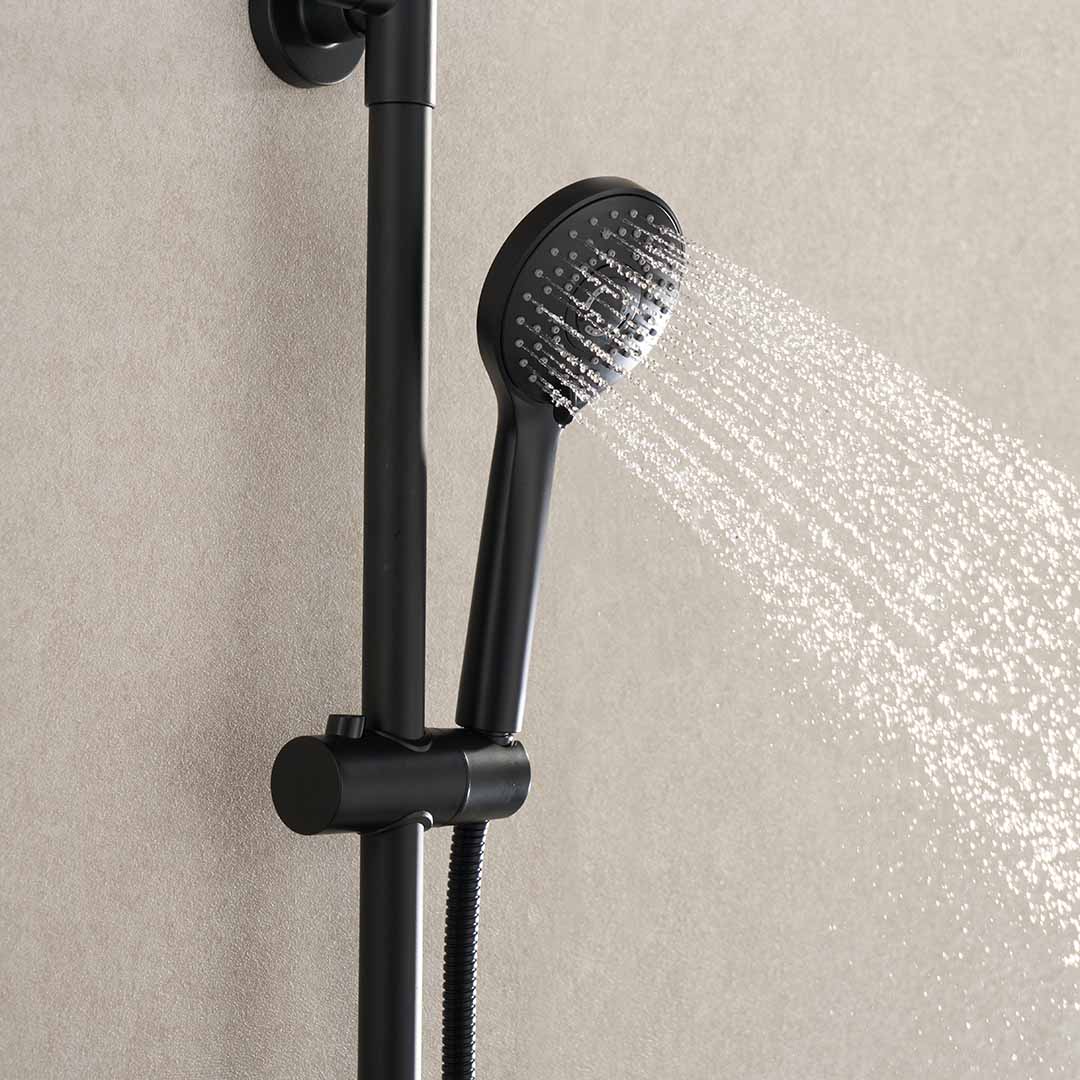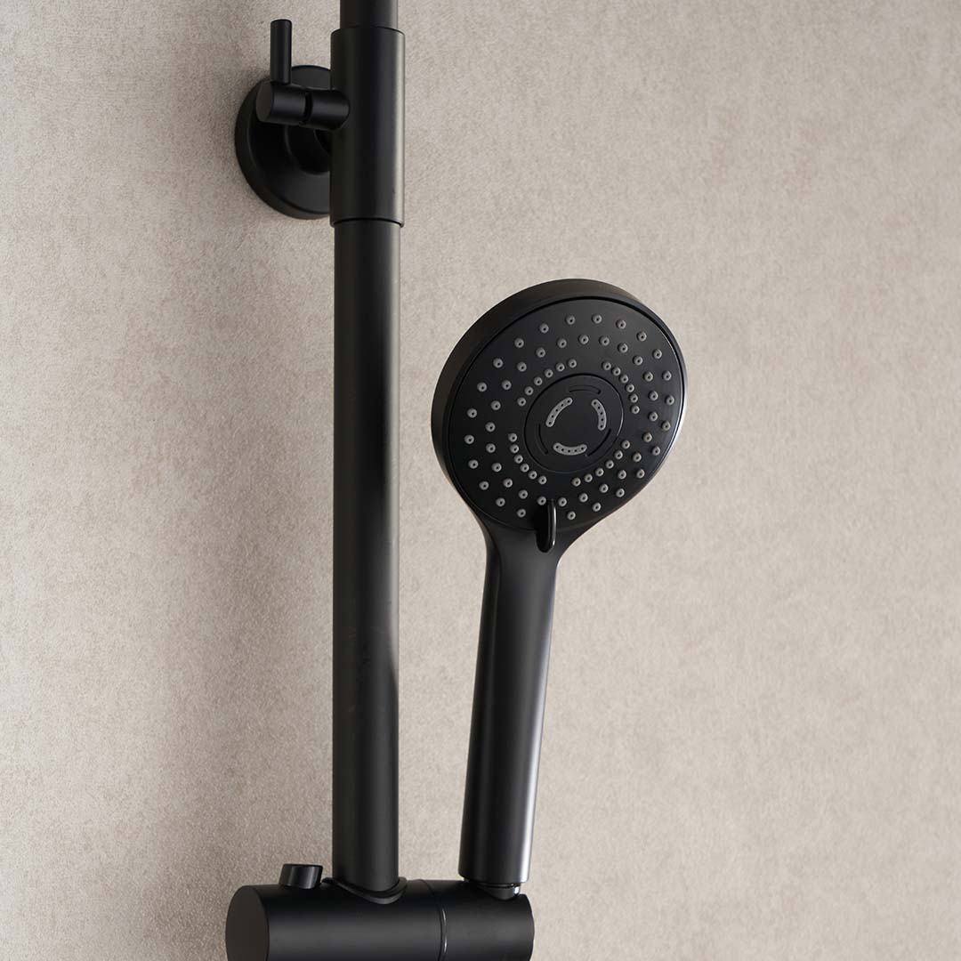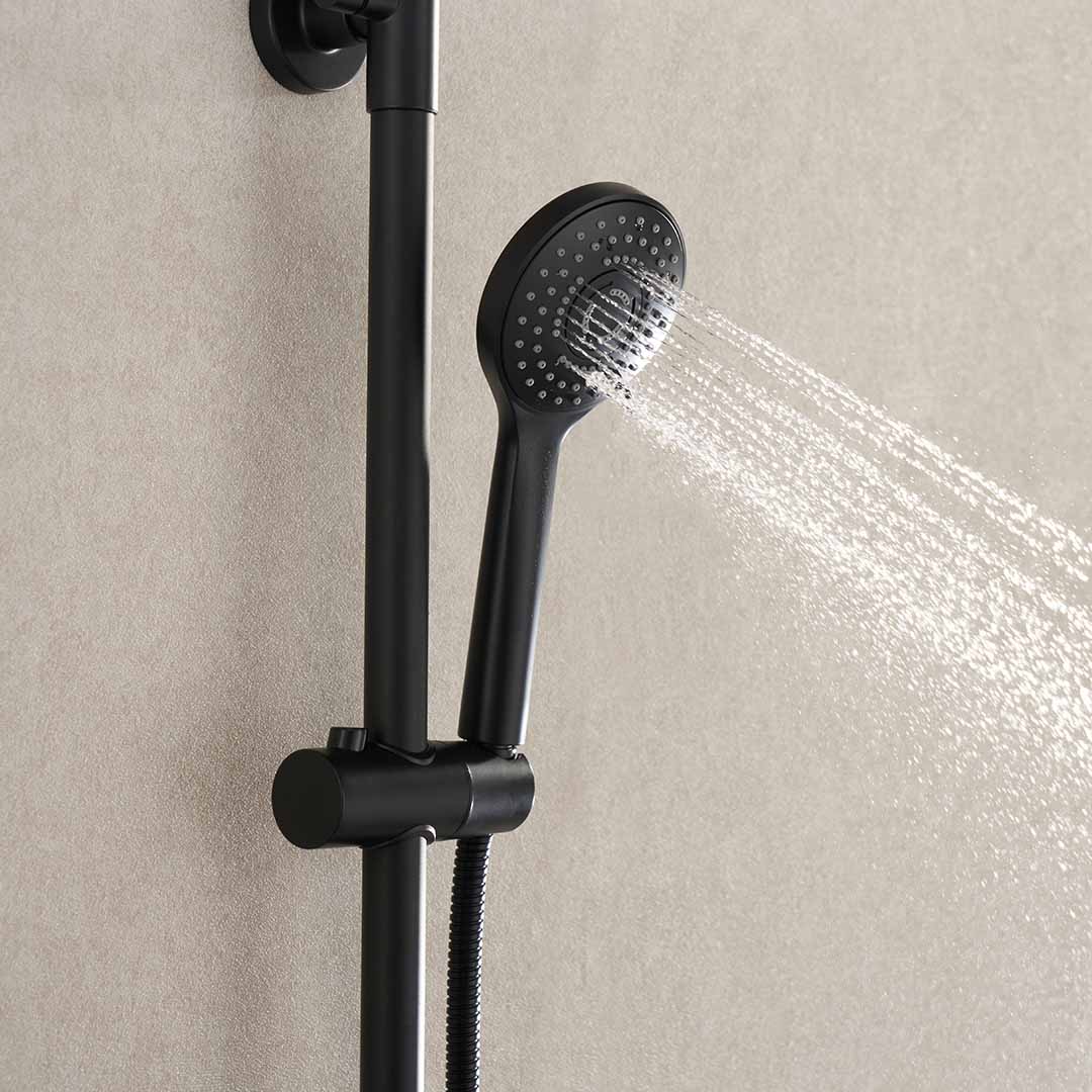 Handduschen har tre strålbilder; normal, dimma och massage. Höjden på övre delen kan justeras, total höjd komplett takdusch 800 – 1200 mm.