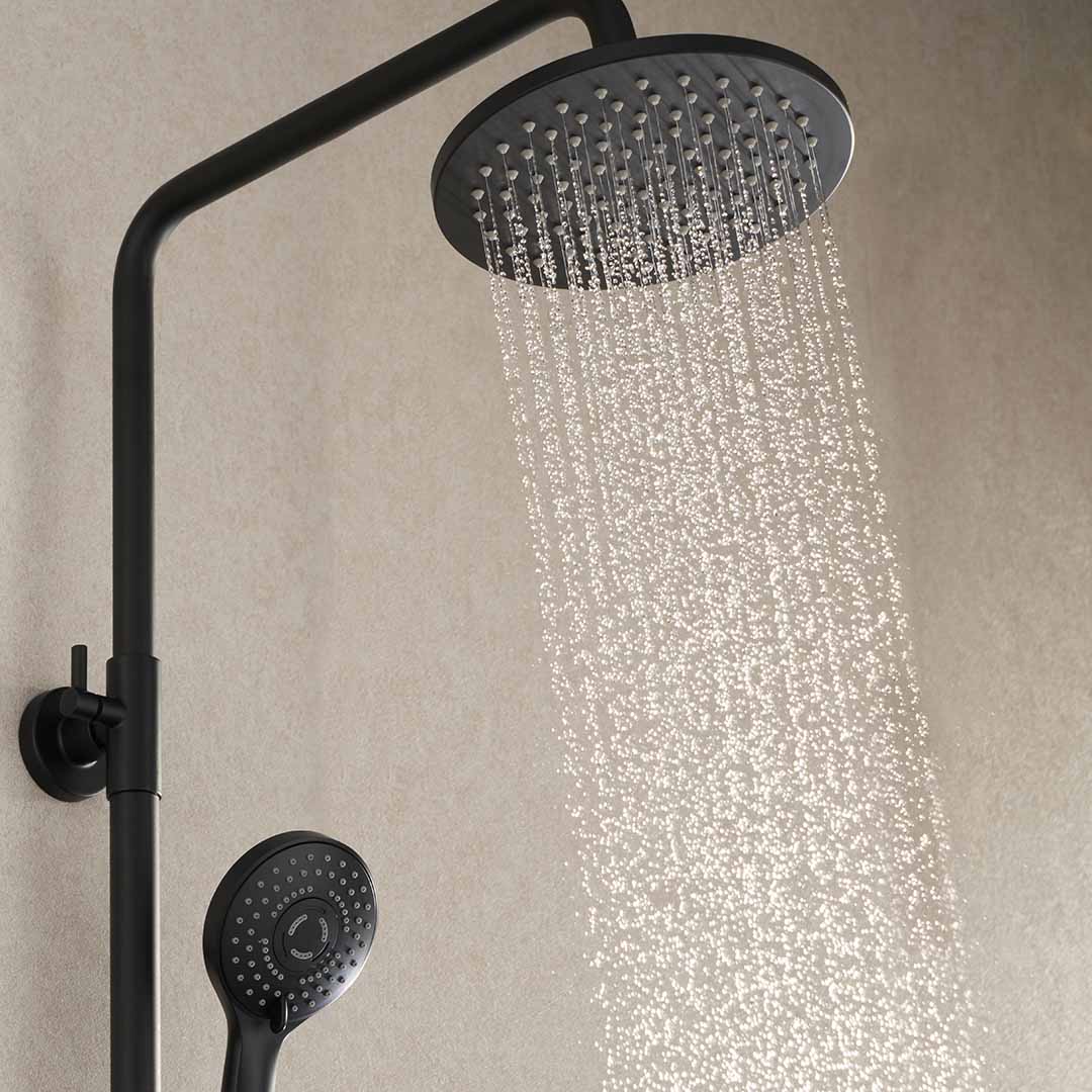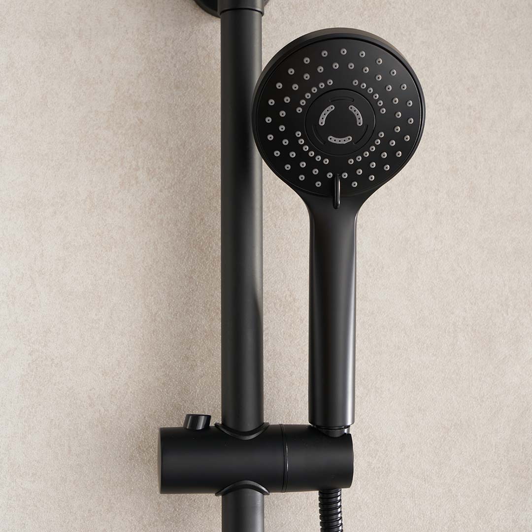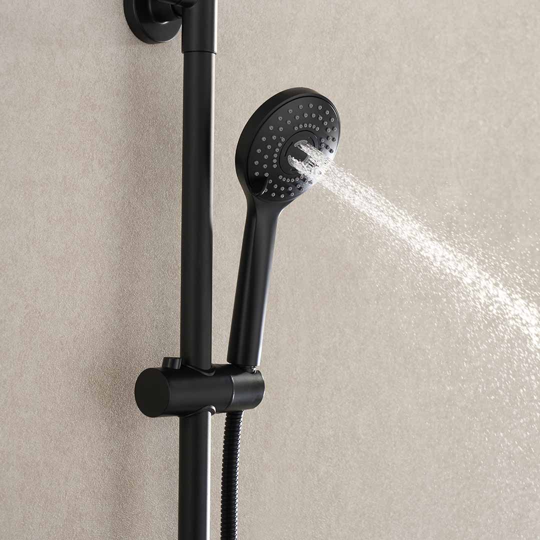 Handduschen har tre strålbilder; normal, dimma och massage. Höjden på övre delen kan justeras, total höjd komplett takdusch 800 – 1200 mm.