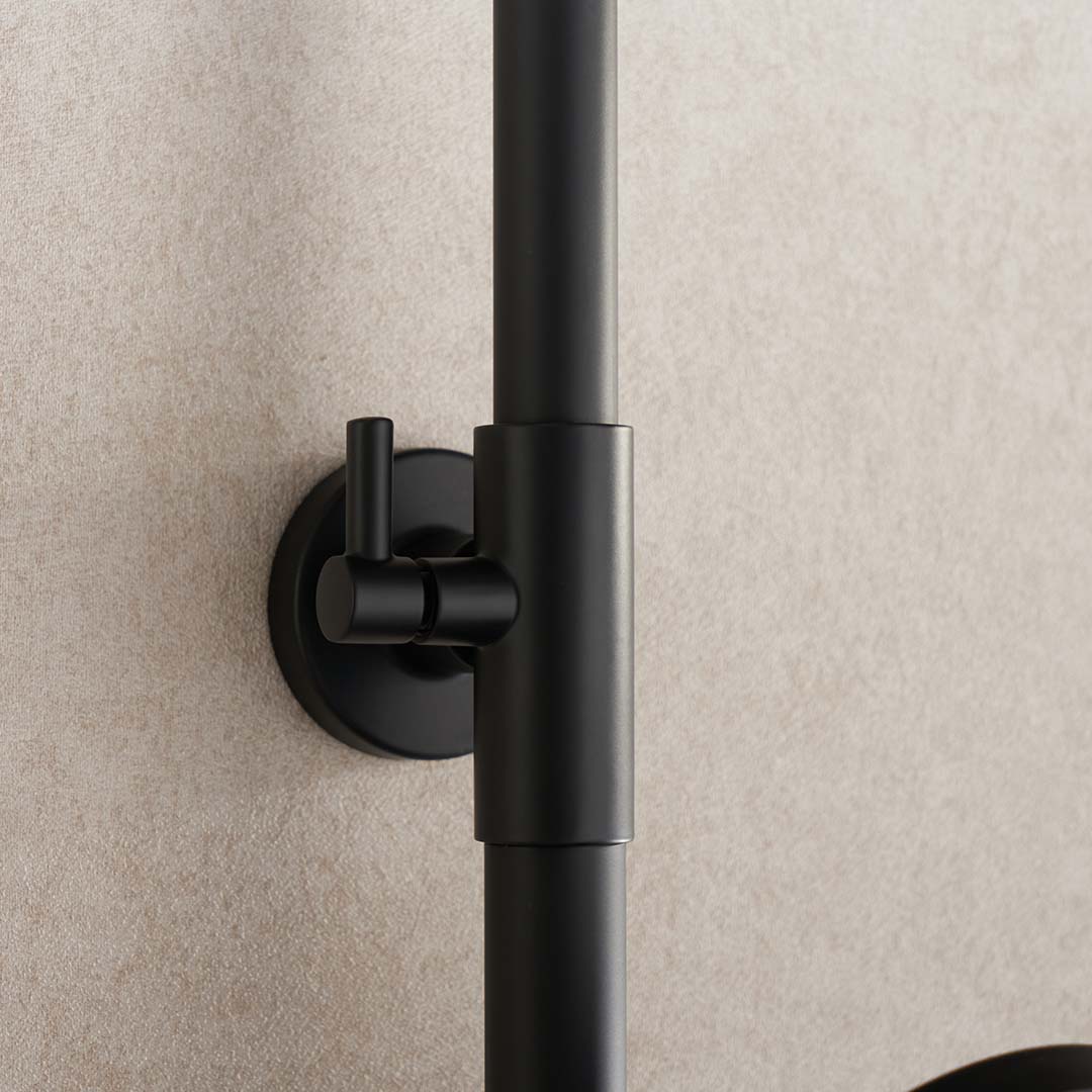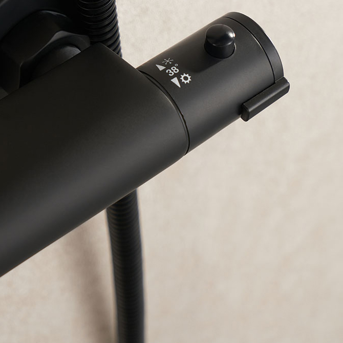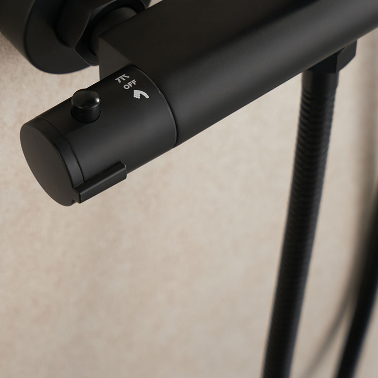 Blandaren har skållningsspärr och du kan enkelt växla mellan handdusch och takdusch genom att vrida på vredet termostatblandaren.
