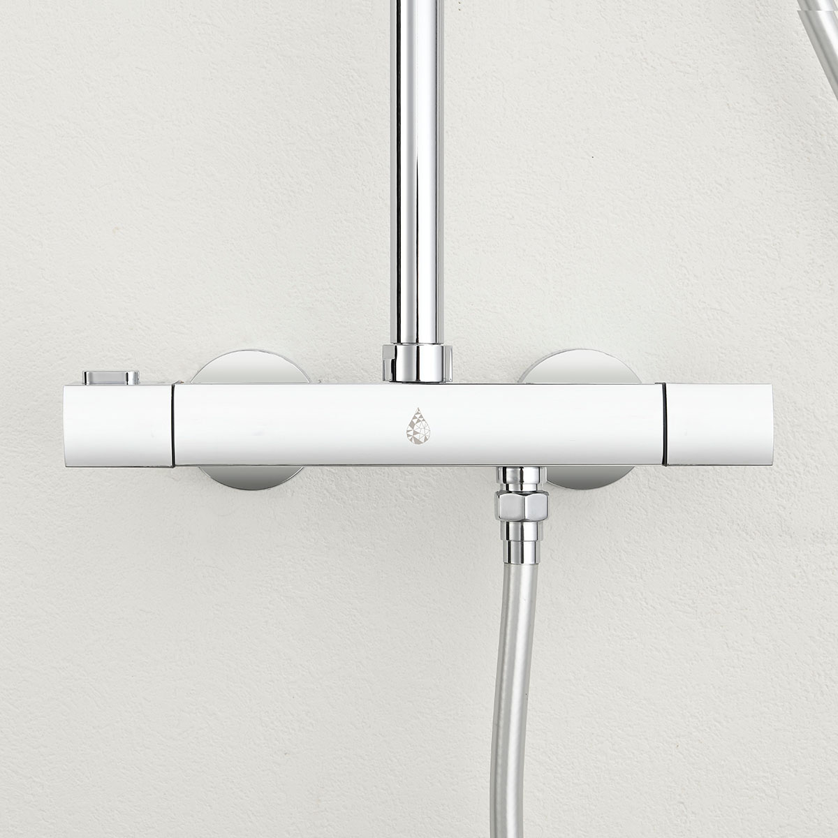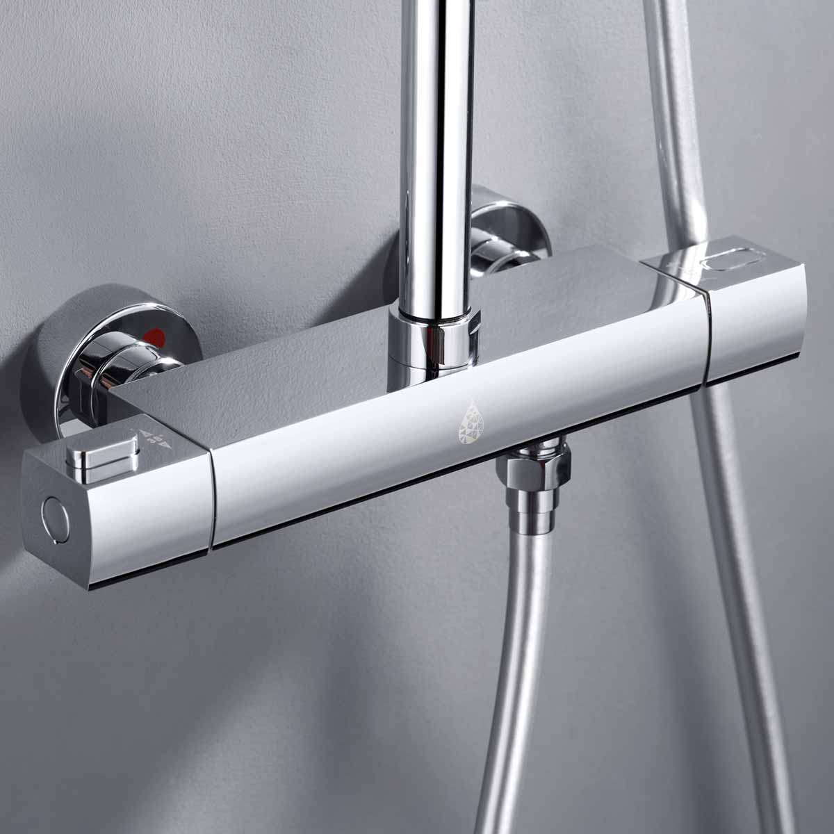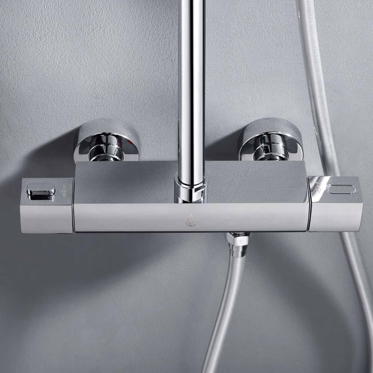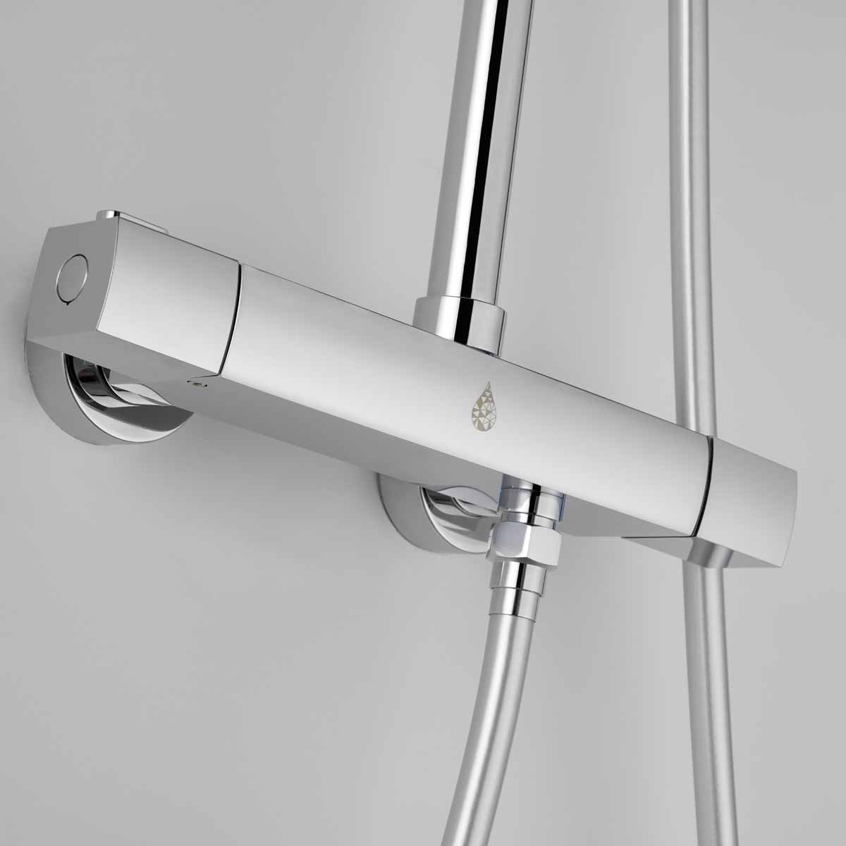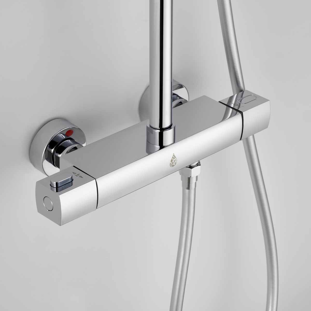 Takduschset Kaskad från Bathlife är ett komplett takduschset i modern och stram design som passar in i de flesta badrum. Detta takduschset har en termostatblandare med ett säkerhetsstopp på 38 grader. Blandaren till takduschsetet kan installeras antingen som 150 cc eller 160 cc med medföljande excenter som ingår. Teknisk data - Varmvatten: min 50 grader-max 90 grader - Kallvatten: min 4 grader-max 25 grader - Arbetstryck: 50-1000 kpa - Rekommenderat tryck: 100-600 kpa