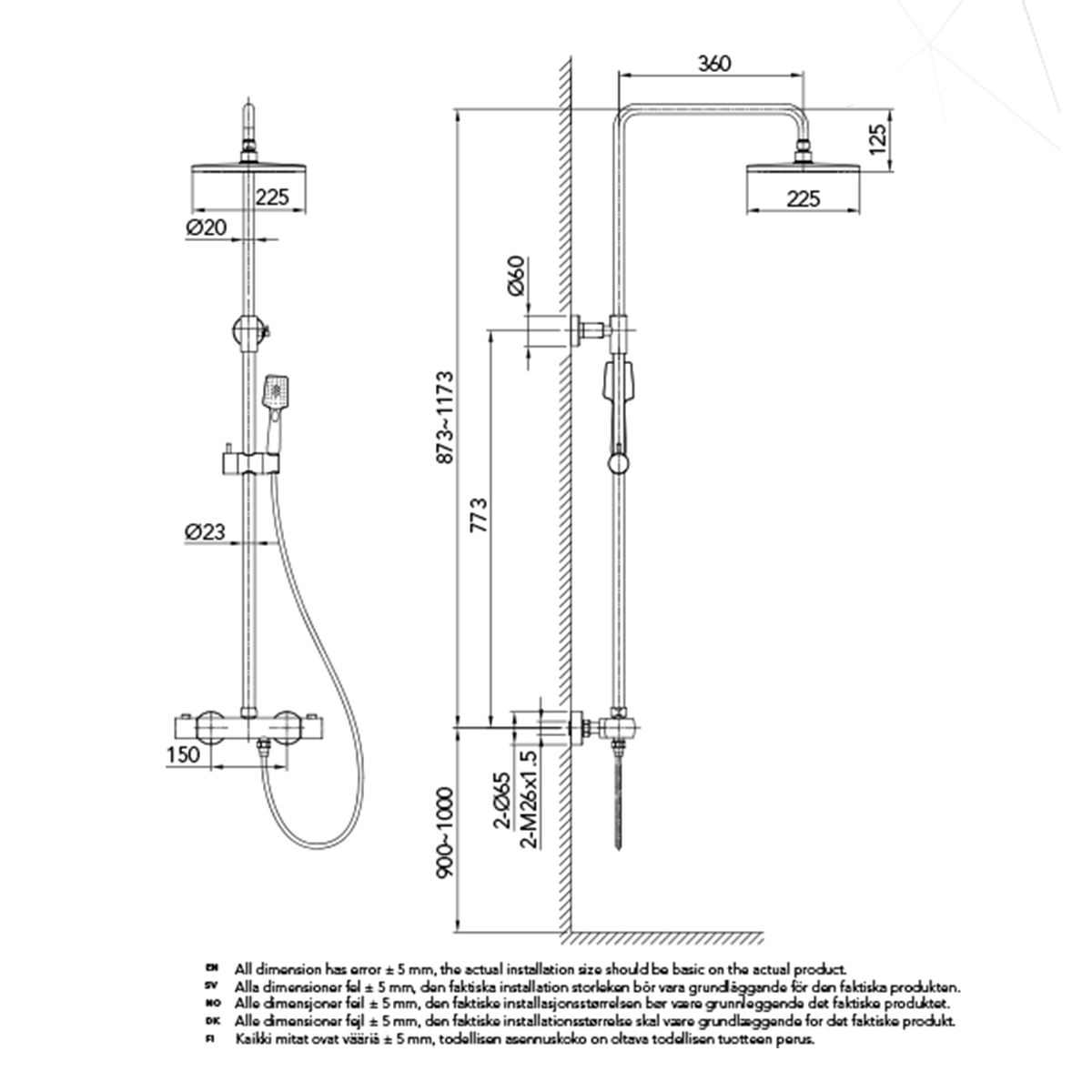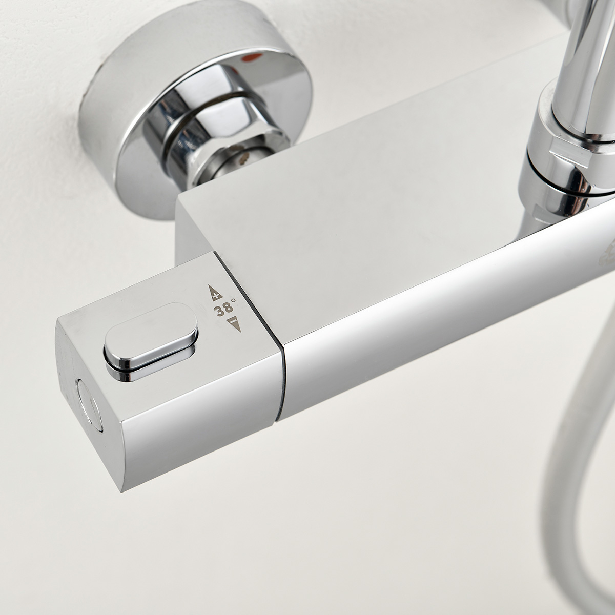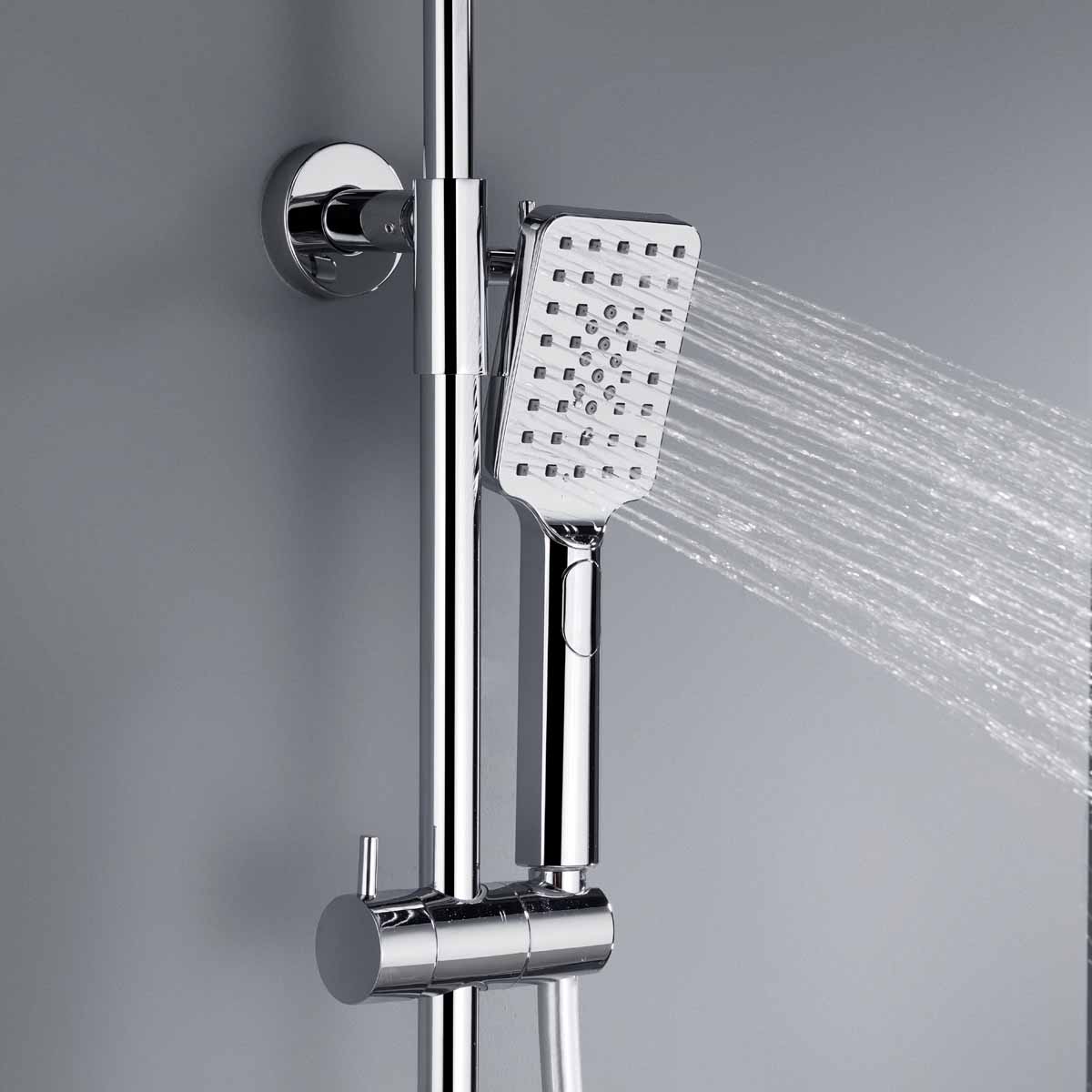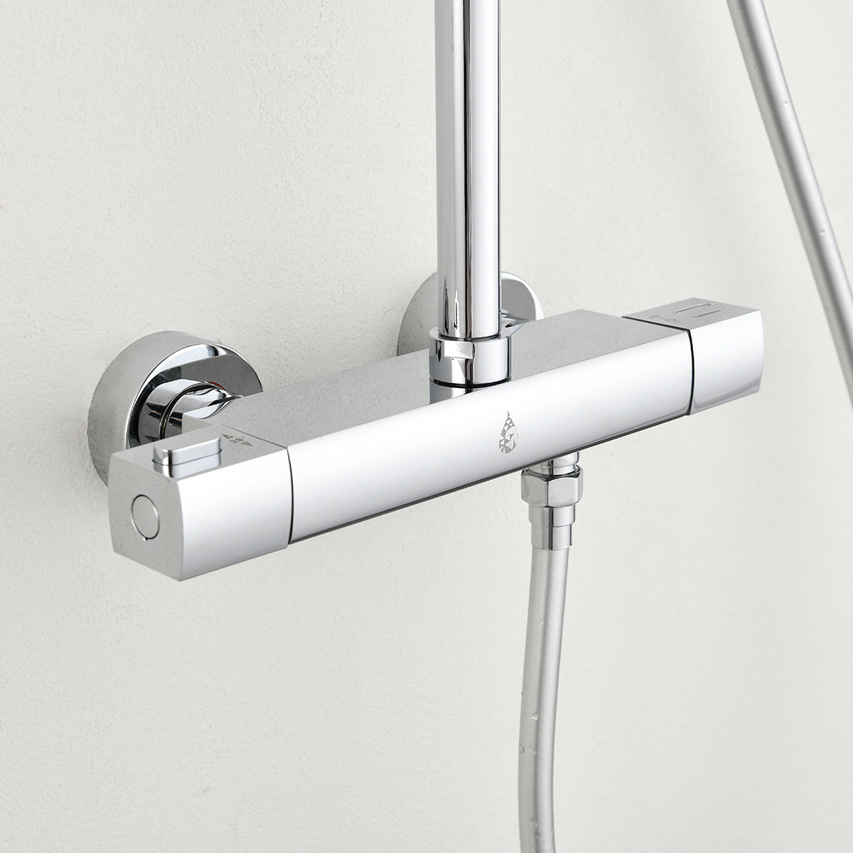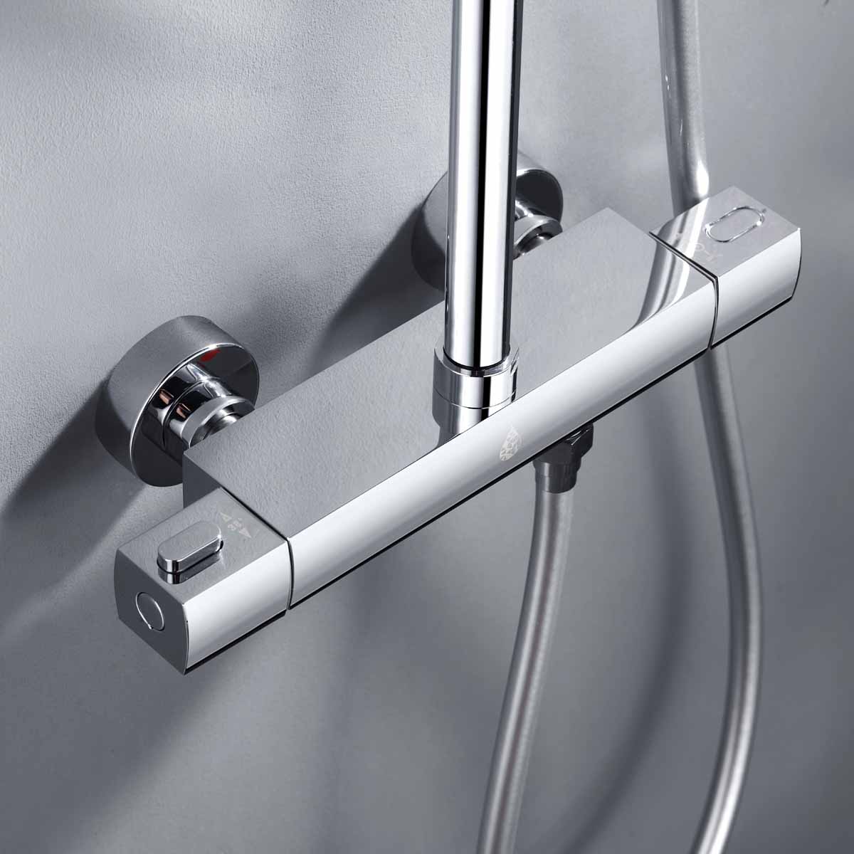Takduschset Kaskad från Bathlife är ett komplett takduschset i modern och stram design som passar in i de flesta badrum. Detta takduschset har en termostatblandare med ett säkerhetsstopp på 38 grader. Blandaren till takduschsetet kan installeras antingen som 150 cc eller 160 cc med medföljande excenter som ingår. Teknisk data - Varmvatten: min 50 grader-max 90 grader - Kallvatten: min 4 grader-max 25 grader - Arbetstryck: 50-1000 kpa - Rekommenderat tryck: 100-600 kpa