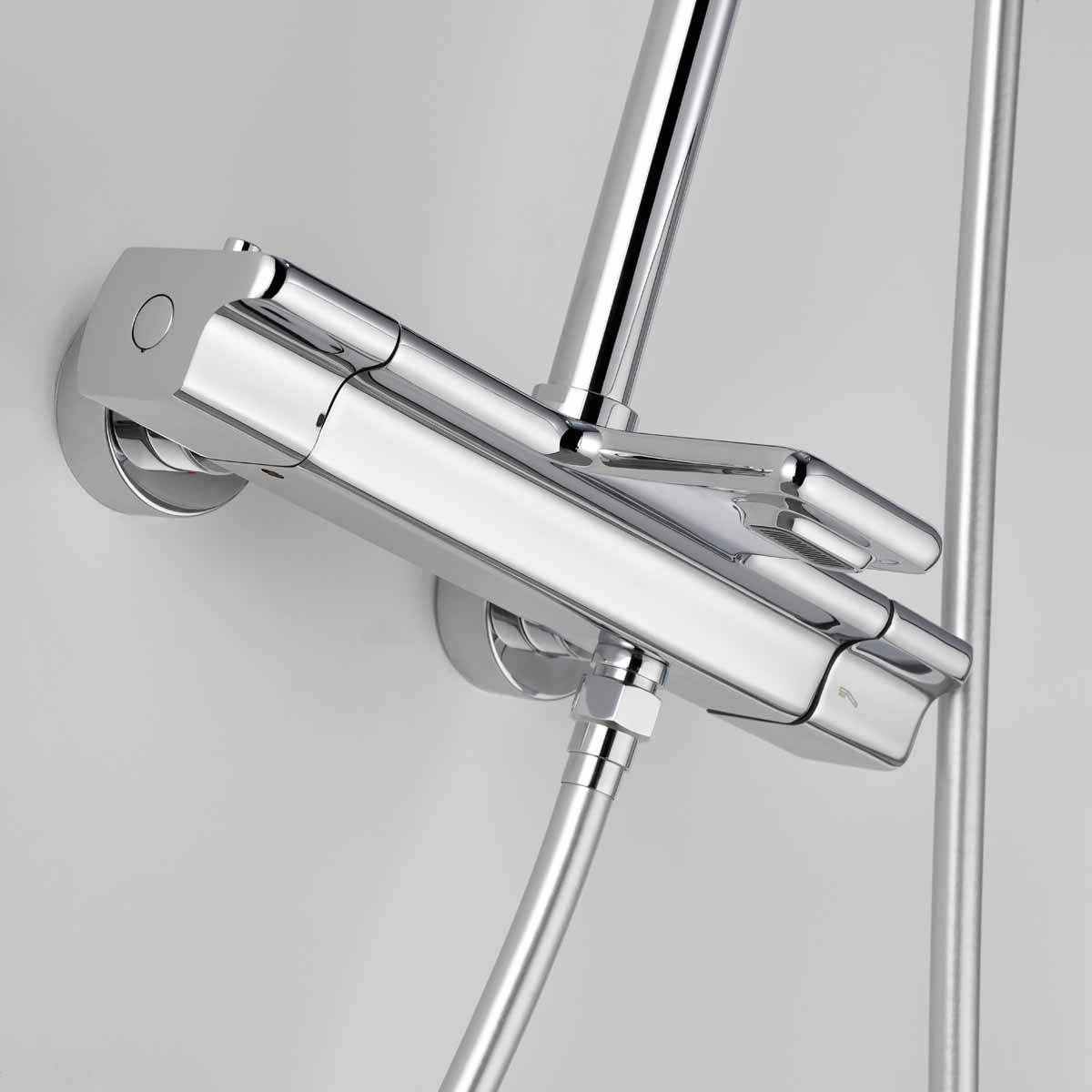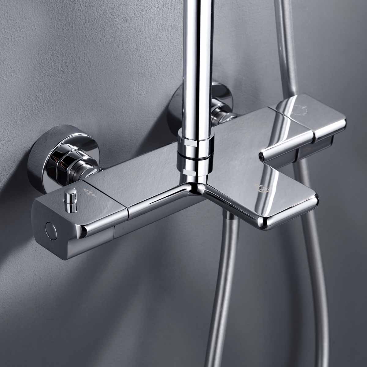 Takduschset Bathlife Stimma tapp är en takdusch med badkarsblandare. Stimma tapp är ett komplett takduschsetpaket i klassisk och stilren design som passar in i de flesta badrum. Stimma tapp är ett takduschset med en termostatblandare med ett säkerhetsstopp på 38 grader. Välj mellan krom, mattsvart/krom och mässing för ett personligare badrum. Blandaren till takduschsetet kan installeras antingen som 150 cc eller 160 cc med medföljande excenter som ingår.