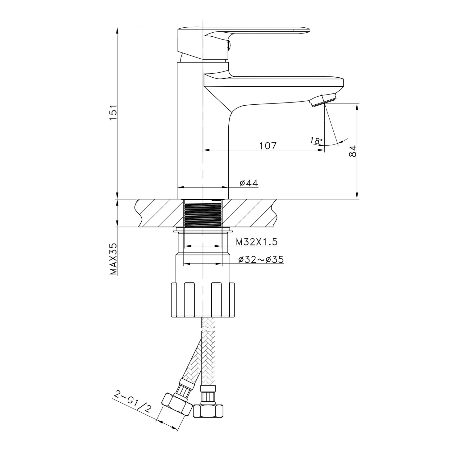 Håldiametern på tvättställen ska vara mellan 32-35 mm