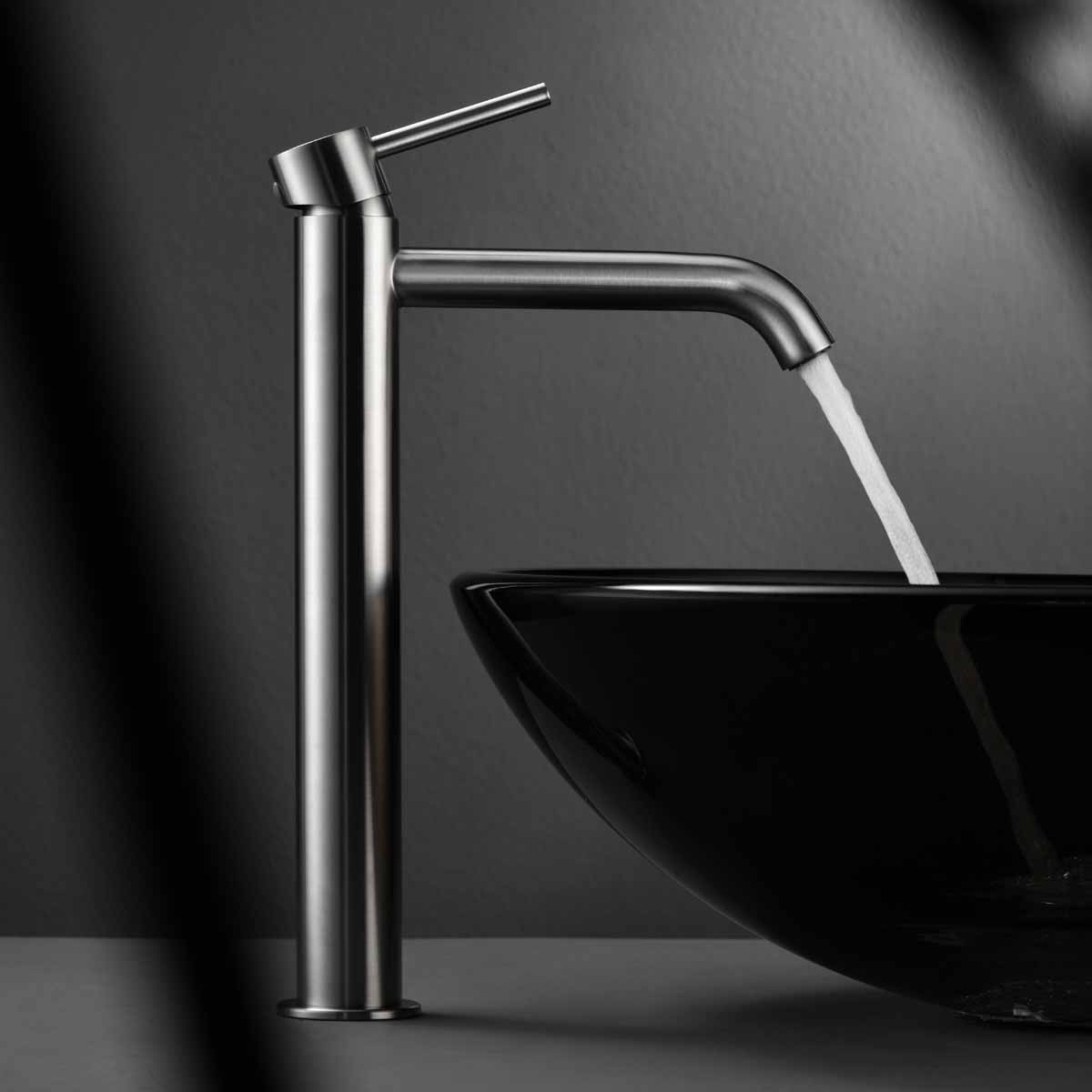 Tvättställsblandare Bathlife Prima av rostfritt stål är en ettgreppsblandare med väl avvägda former. Den fina formen gör att blandaren passar in i badrum med alla typer av stilar. Prima finns med borstad yta samt svart matt.