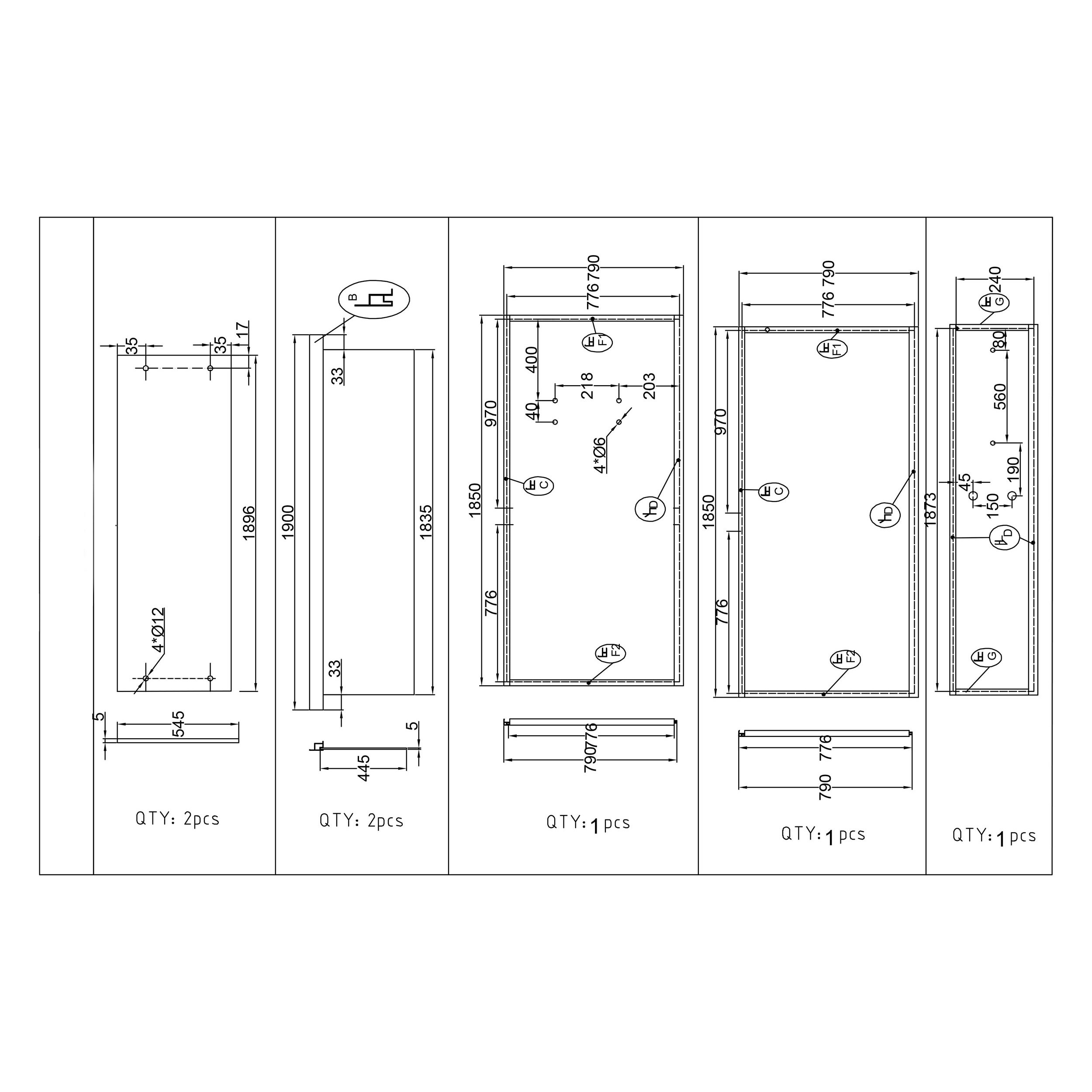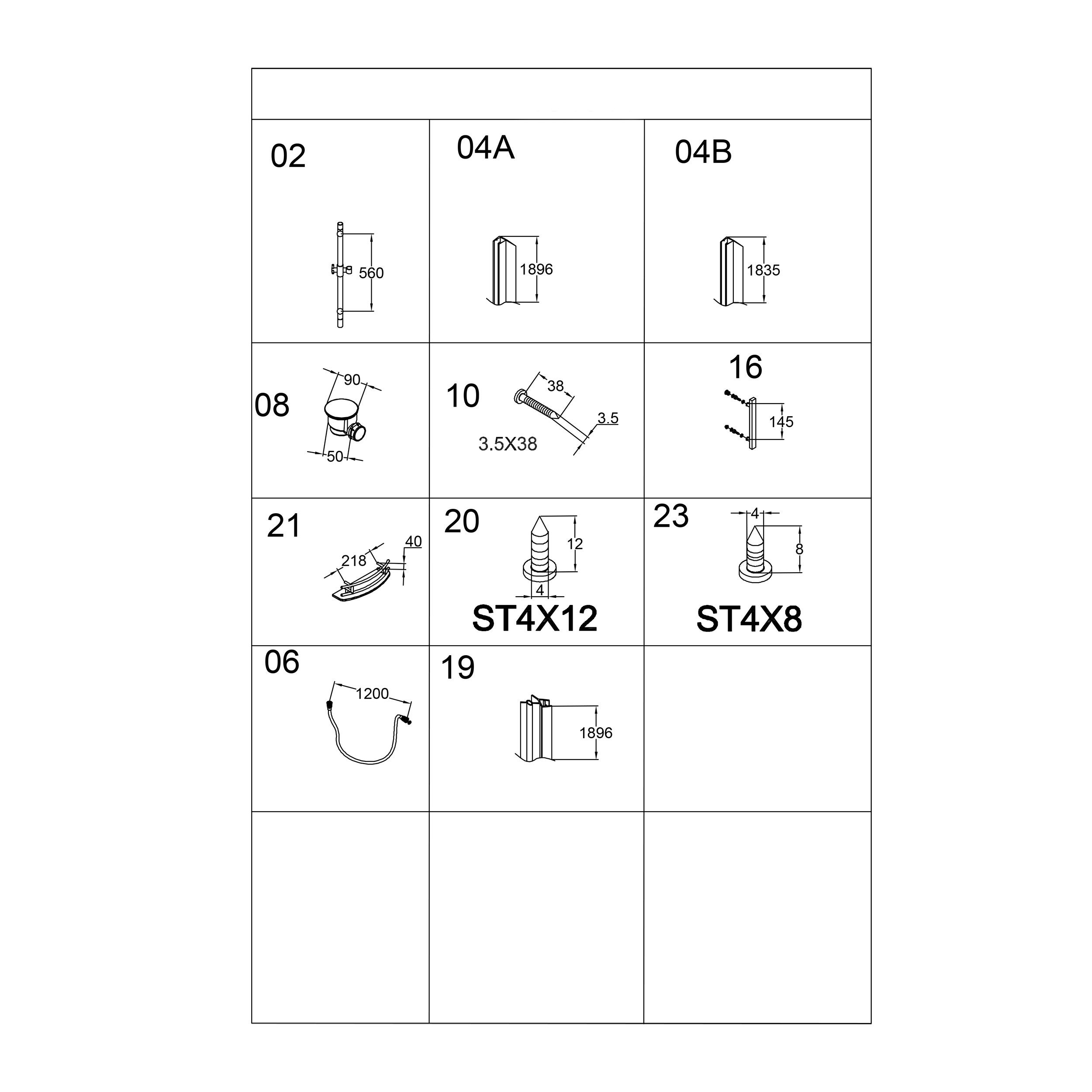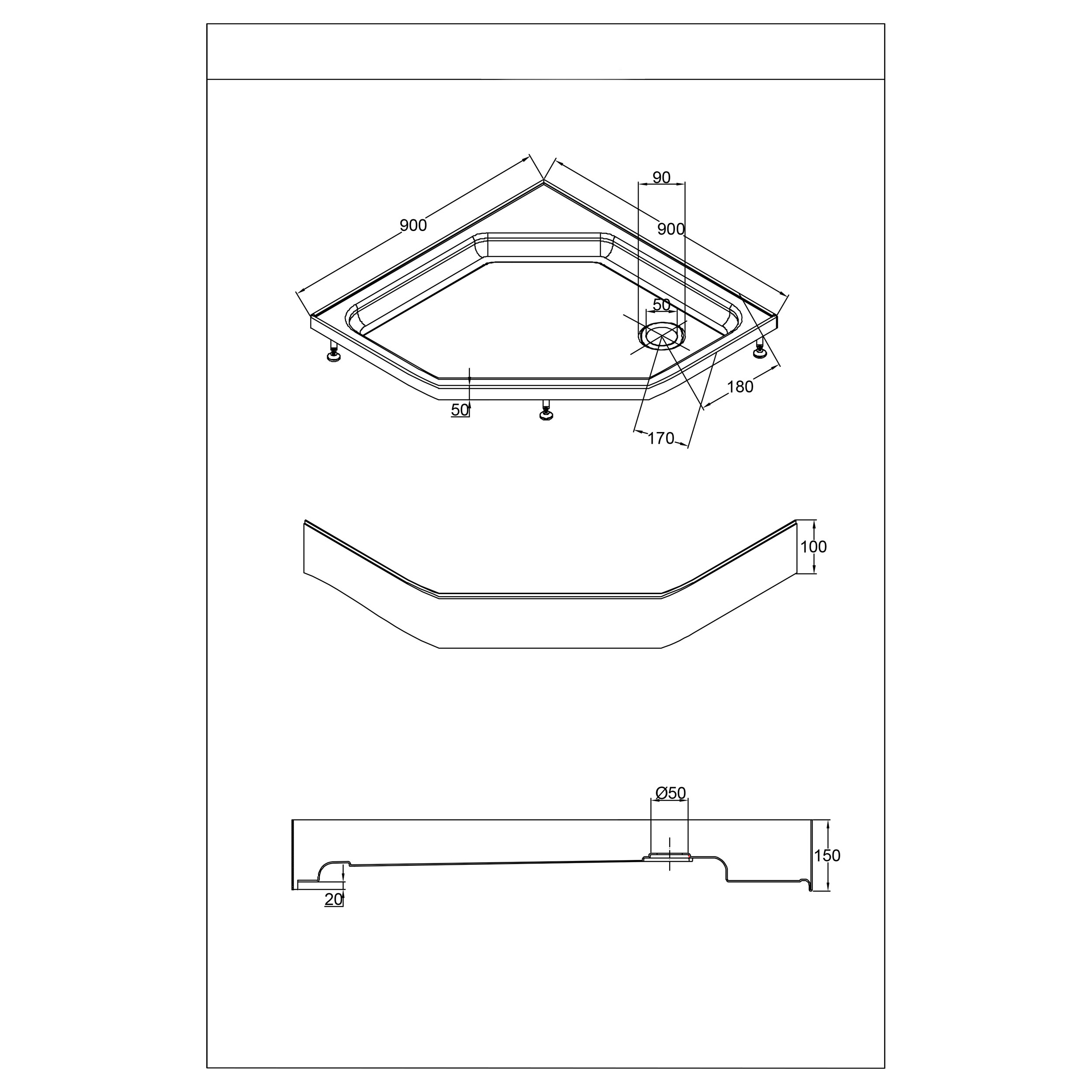 Dörren är högerhängd och går ej att hängas om. Montering av blandare görs i hörnet och har mått 150 cc. Bottenventil och avlopp ingår. Blandare ingår ej!