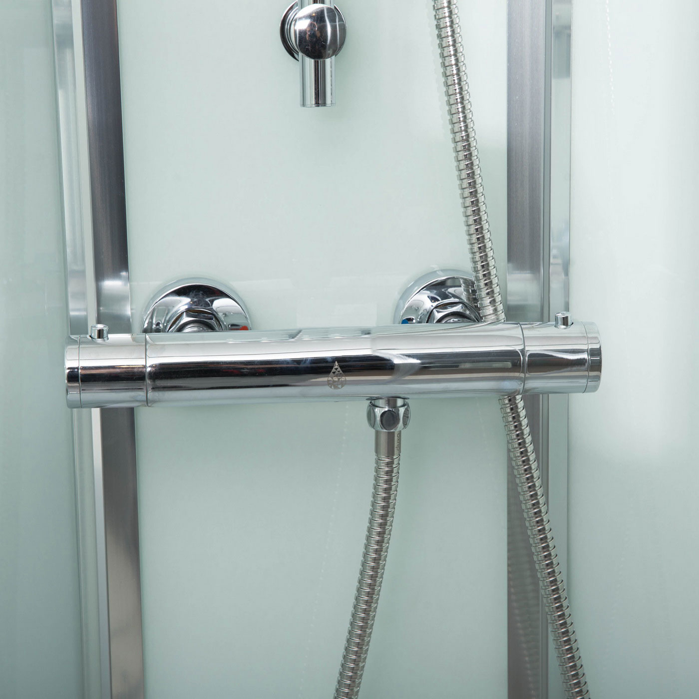 Duschkabin Ideal 90x90 Elegant är en stilren, prisvärd och lättmonterad duschkabin med hörningång. Utrustad med 6 mm härdat säkerhetsglas och ett stabilt kar i vit akryl med avtagbar front.