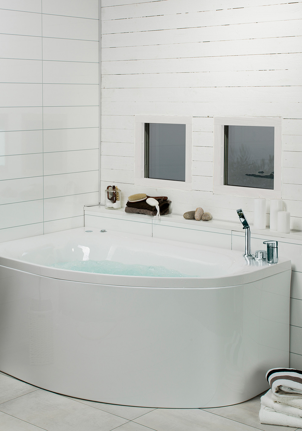 Massagebadkar Trivsam från Bathlife är ett offsetkar med liggplats utformat för en person. Trivsam är lättplacerat i ditt badrum tack vare sin form.