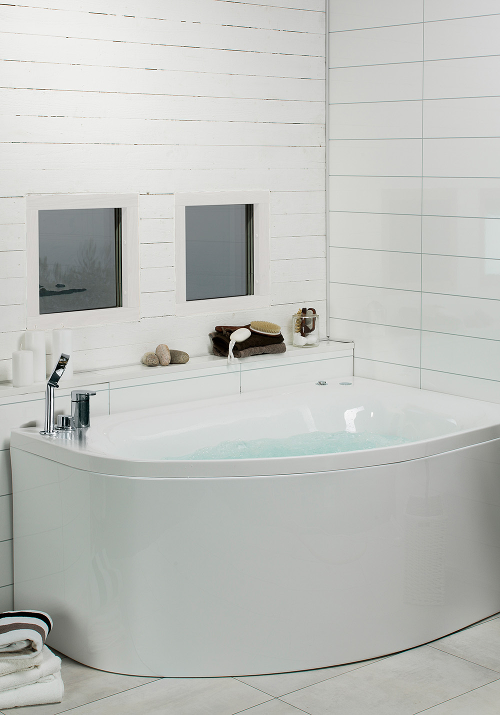 Massagebadkar Trivsam från Bathlife är ett offsetkar med liggplats utformat för en person. Trivsam är lättplacerat i ditt badrum tack vare sin form. Finns i höger- och vänsterutförande. Välj mellan tre olika system, Intro, Plus och Premium för bästa komfort för just dig. Tillverkat i Sverige av tålig sanitetsakryl och leveras med front, gavel och sargblandare.